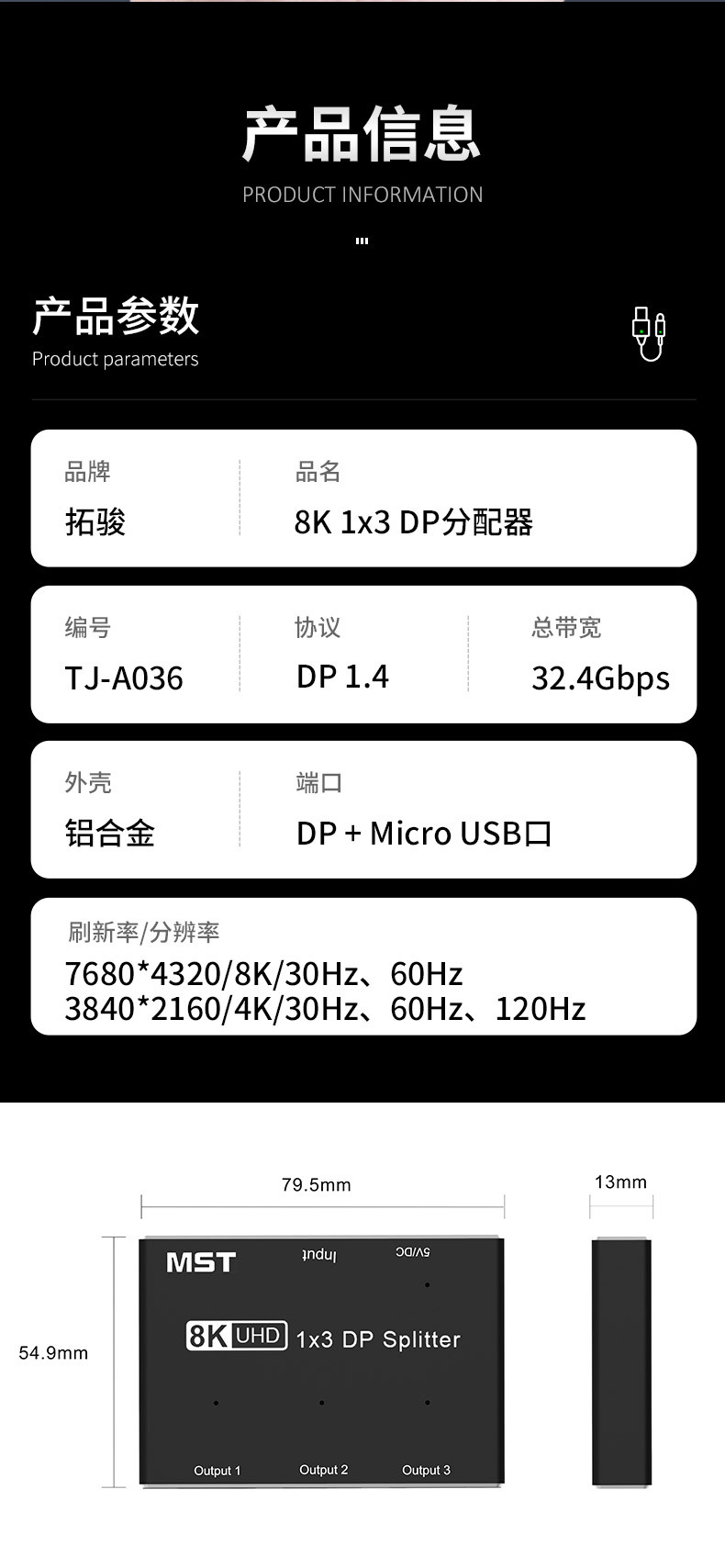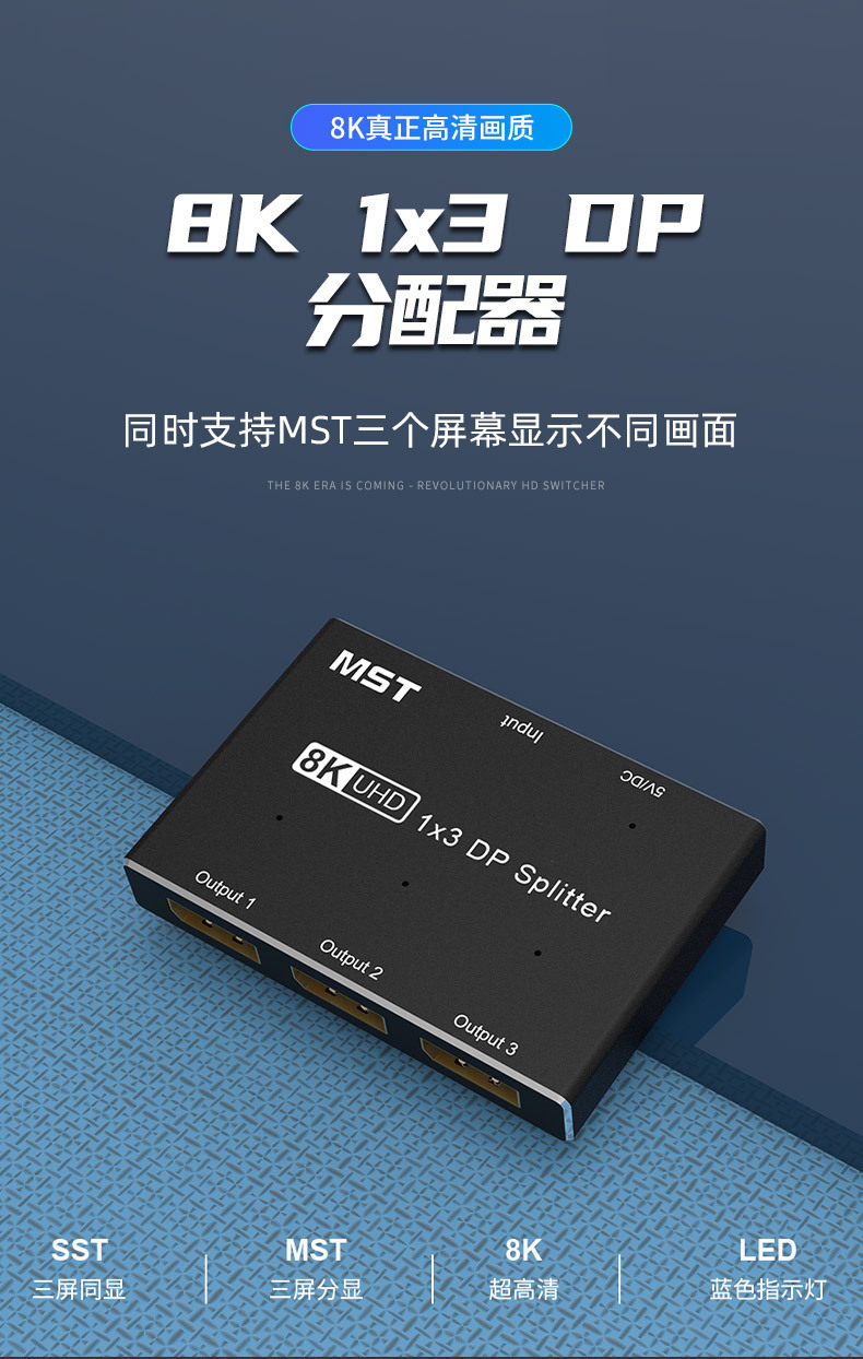Spot 8K разветвитель DP «один в три» 8K60 Гц компьютерный ТВ-монитор HD MST преобразователь с разделенным экраном