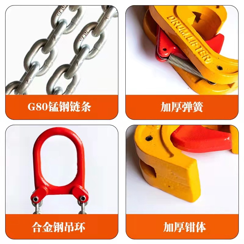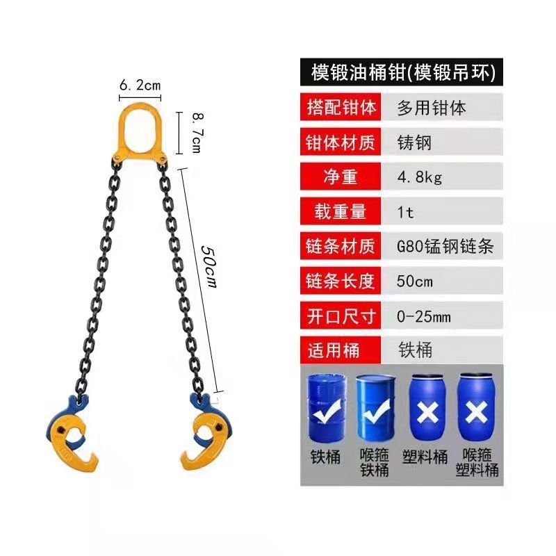 Клещи для масляных барабанов QT-300 кг; Плоскогубцы для масляных бочек с двойной цепью 0,6 T; Двухцепные плоскогубцы для нефтяных бочек 0,6 т (вилочный погрузчик); Плоскогубцы для масляных бочек с двойной цепью 1T; Двухцепной штамповочный масляный бочонок зажим 1T (вилочный погрузчик); Плоскогубцы для масляных бочек с двойной цепью 1T (подъемное кольцо для штамповки); Плоскогубцы для нефтяных бочек Hawkmouth с двойной цепью 0,6 т; Двухцепные плоскогубцы для масляных бочек Chickenmouth 0,6 т (вилочный погрузчик); Двухцепные плоскогубцы для нефтяных бочек Hawkmouth 0,6 т (квадратный ящик вилочного погрузчика); Четырехножный ястреб 1,5 т (круговая цепь вилочного погрузчика); Четыре ноги Ястреба 1,5 T (квадратное кольцо вилочного погрузчика); Двойная цепь железо-пластик двойного назначения 0,6 т (обычное подъемное кольцо); Железо-пластик с двойной цепью двойного назначения 0,6 T (подъемное кольцо вилочного погрузчика); Двойная цепь Железный пластик 0,6 T (Вилочный квадратное кольцо); Четырехцепная железо-пластиковая двойного назначения 1,5 т (круглая цепь для вилочного погрузчика); Четырехцепной железо-пластиковый двойного назначения 1,5 т (вилочный погрузчик)