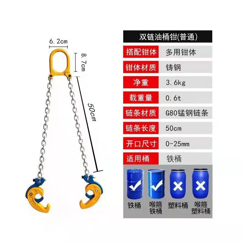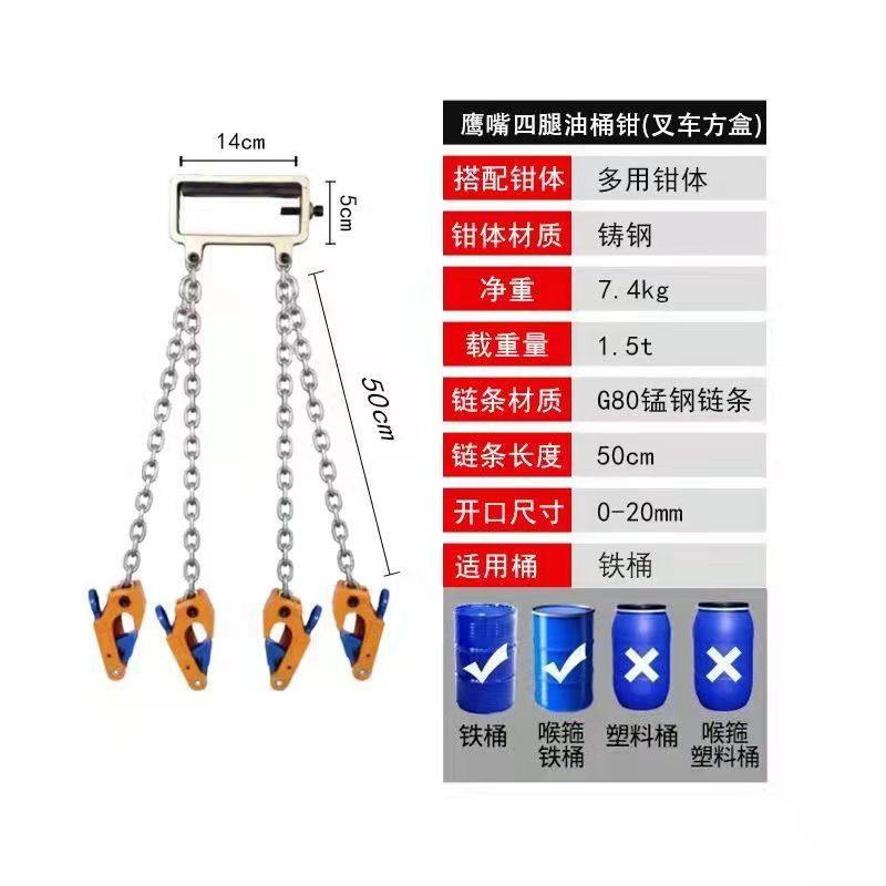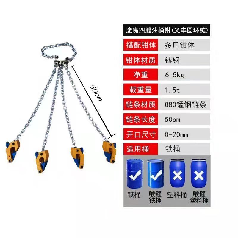Масляный барабан защемление двойная цепь четырехзажимный вилочный погрузчик специальный подъемный разбрасыватель Железный Ковш зажим крюк Железный пластиковый крюк
