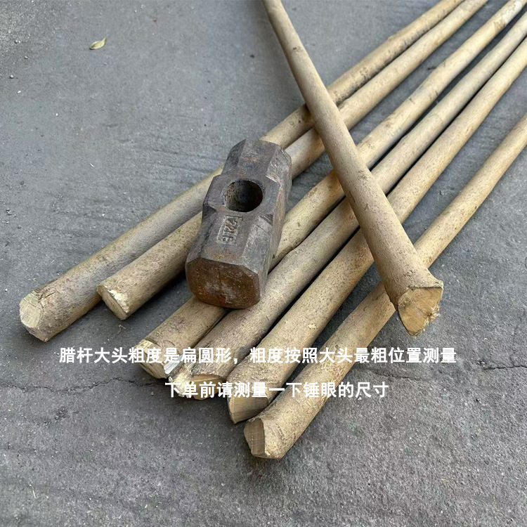 带皮白蜡杆是天然生长木材,主做大锤专用木柄,特点是大头粗小头细。