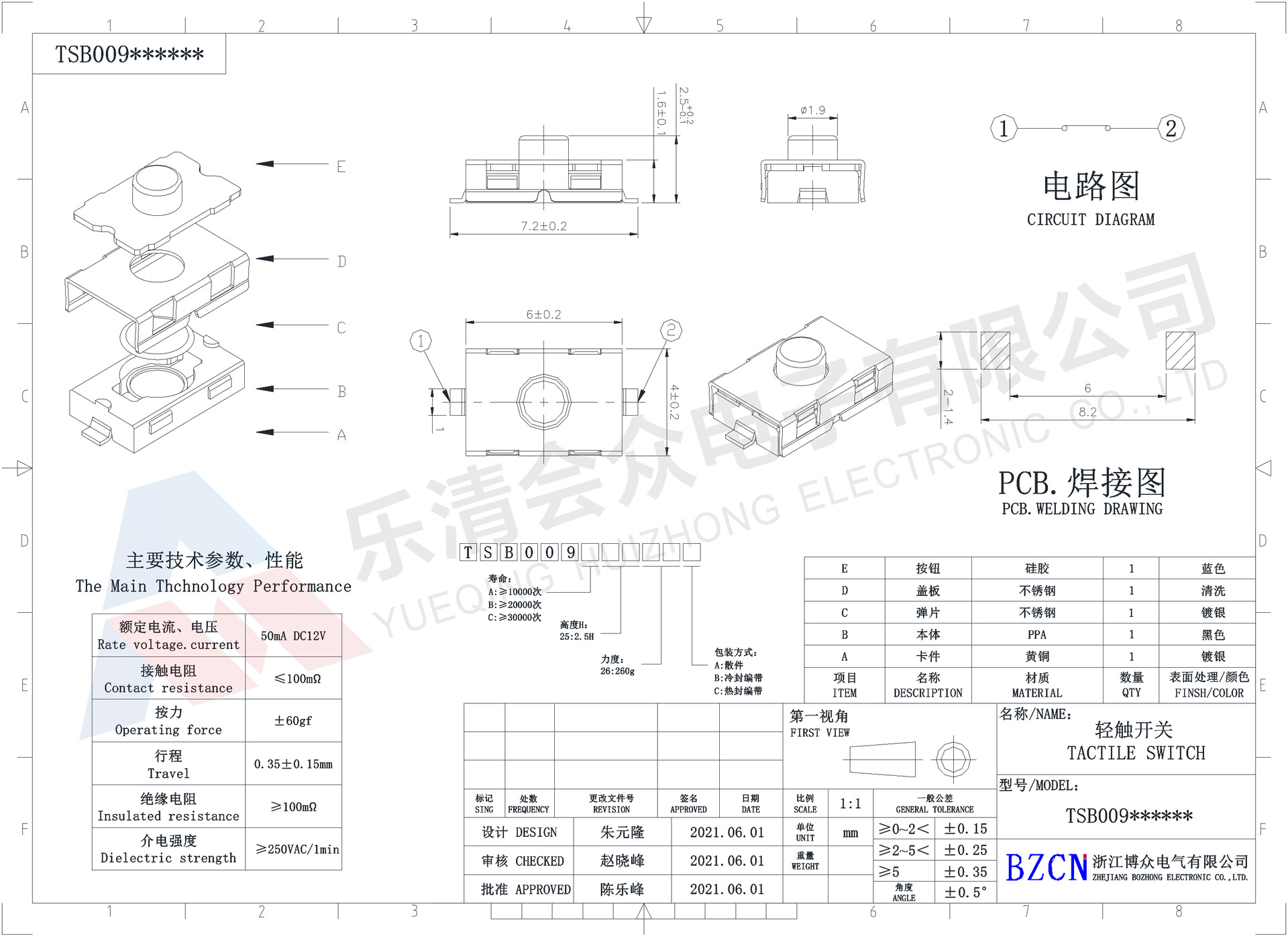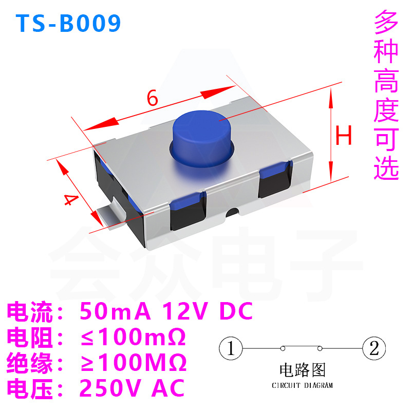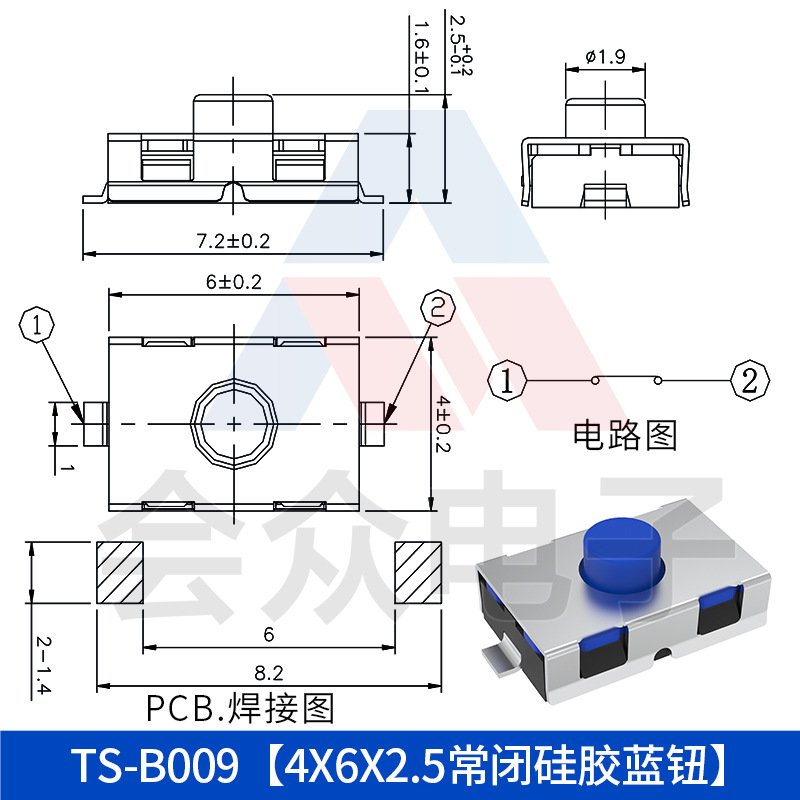 Тактовый переключатель TS-B009 нормально закрытого типа, силиконовая кнопка 3.8*6*2.5, водонепроницаемый, для поверхностного монтажа, двухконтактный переключатель 4*6*2.5