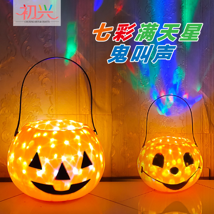 Звезды Тыква фонарь Хэллоуин дети тыква ведро фонарь Портативный кувшин с конфетами реквизит для выступлений светящийся оркестр музыка