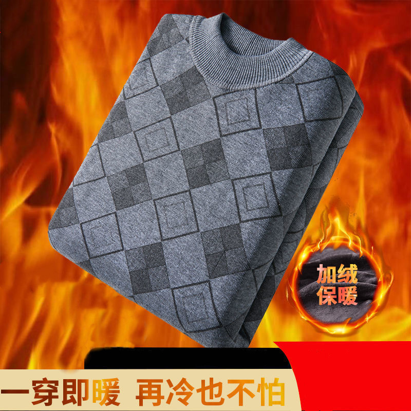 Мужское термобелье, осенне-зимнее нижнее белье для мужчин среднего возраста, Базовая рубашка, Мужская Утепленная осенняя одежда на флисовой подкладке, мужской хлопковый свитер со средним воротником