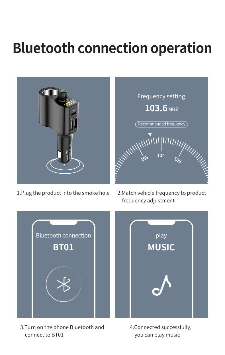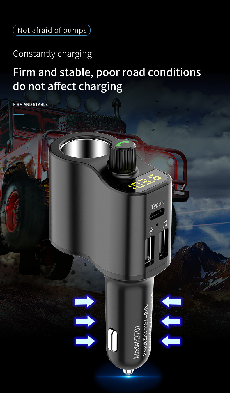 【BT01车载mp3播放器多功能蓝牙fm发射器接收器 3USB汽车点烟器车充】
