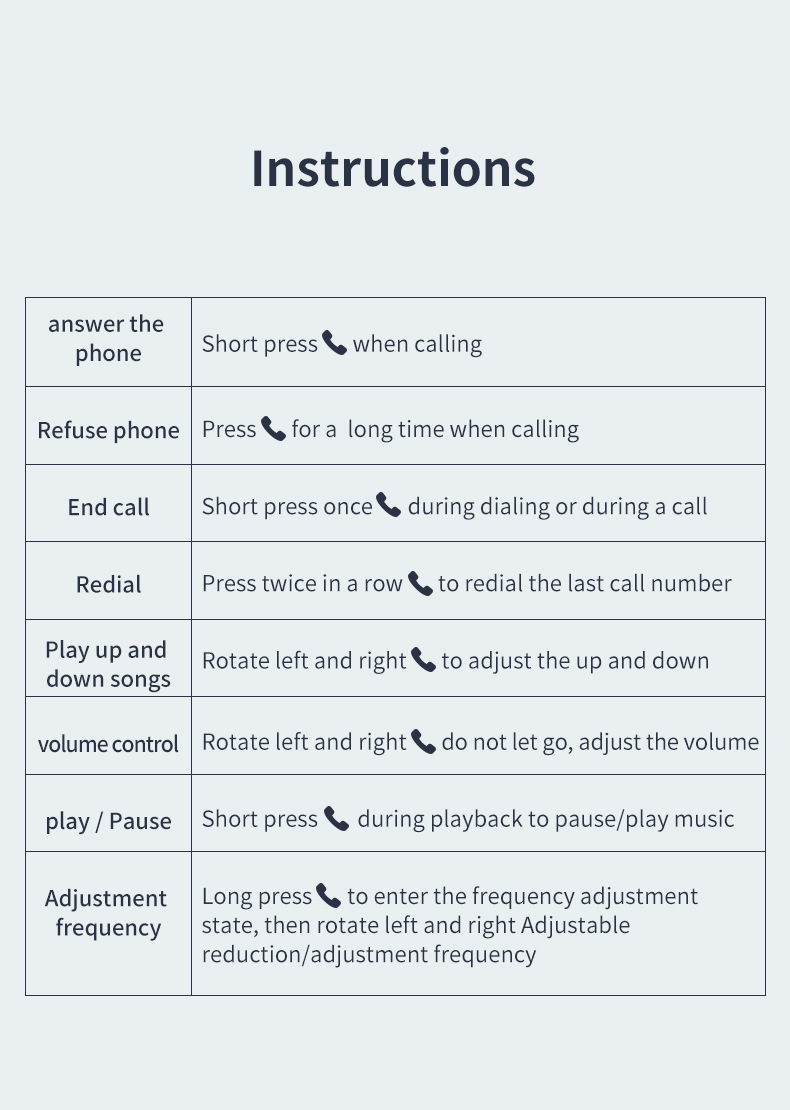5.支持免提接听,来电短按电话键接听长按拒接,双击末号回拨,