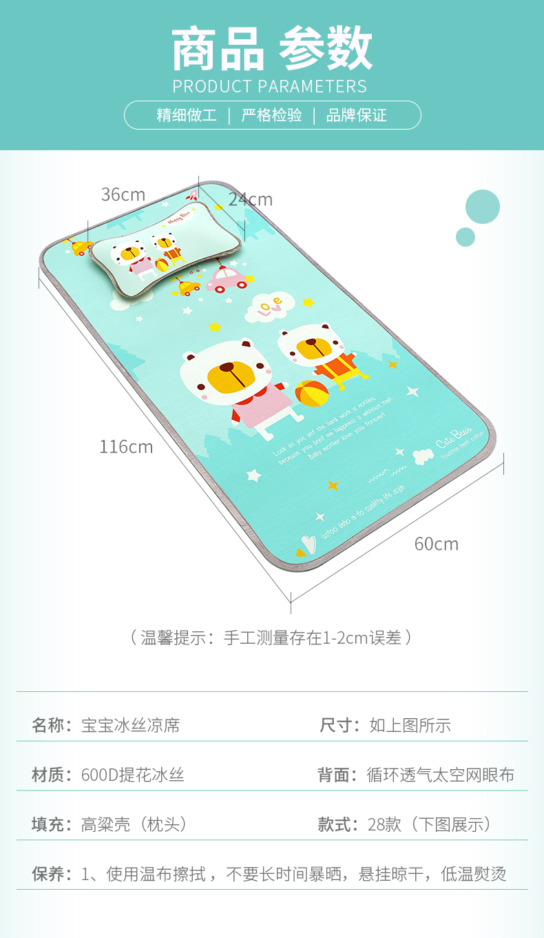 Кроватка ледяной Шелковый коврик Детская кровать для новорожденных Летний дышащий коврик детский сад детский ворс специальный коврик