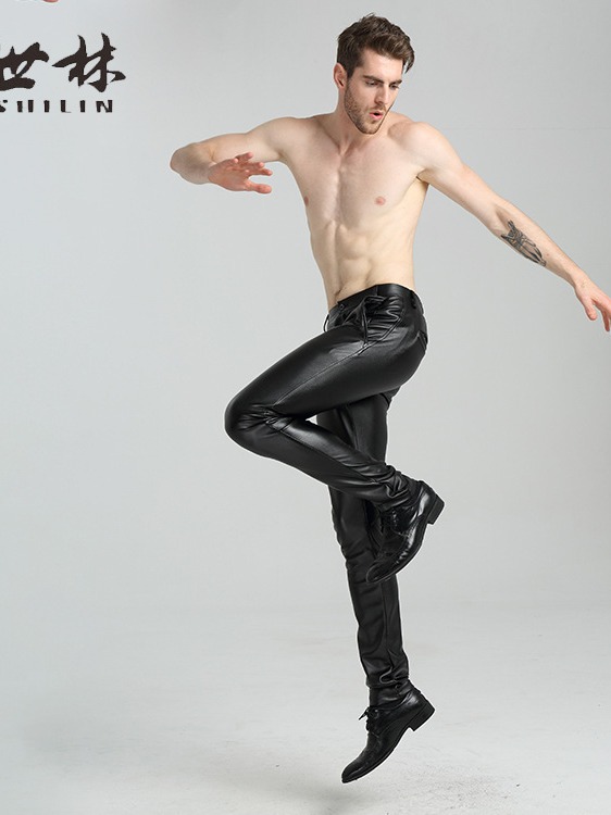 Мужские облегающие кожаные брюки большого размера для мотоциклистов, черные, красные, белые, с флисовой подкладкой, оптом