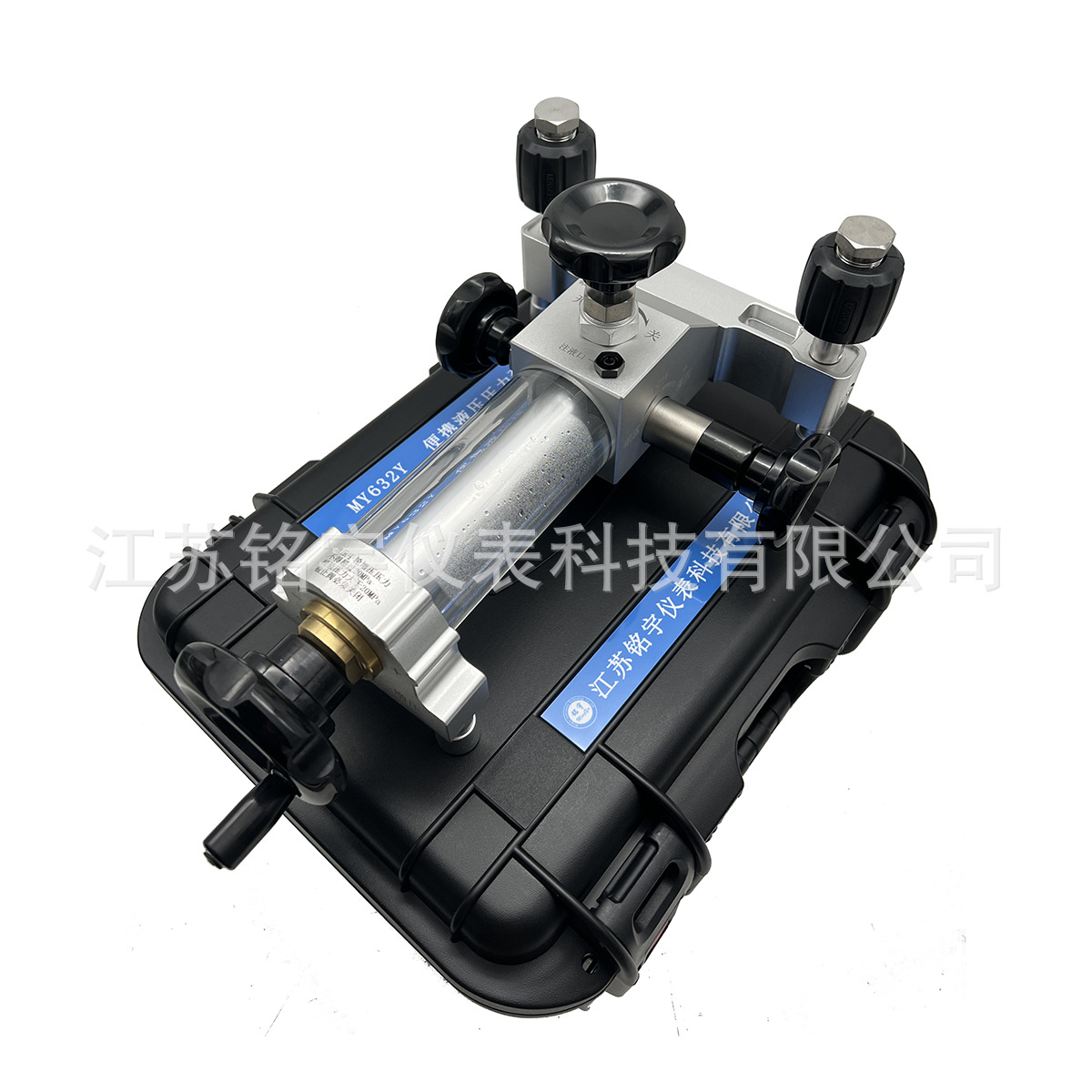MY632Y手动液压源具有结构简单、操作省力、便于携带、不易泄漏、维护量极少的特点。主要用于现场或实验室校验压力(差压)变送器、精密压力表、其他压力仪器仪表时,提供稳定的压力。重量轻,体积小,特别适合下厂检定检测,便携式液压源适用于高压力过程控制中现场调试,也可以为测量压力的仪表制造厂校验仪表提供压力源。