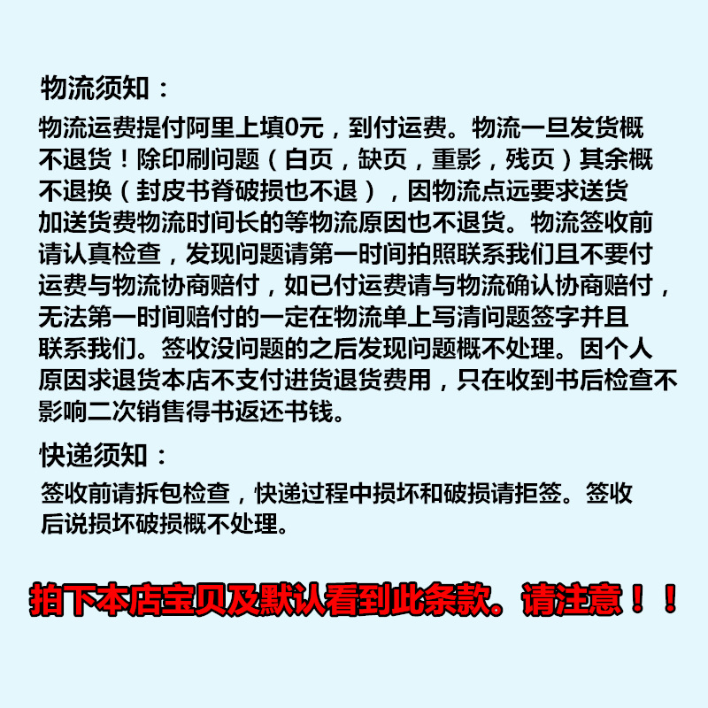 发物流:一件货起发物流。75本一提(一本书一个画面),一件货两提,150本一件起发150-300本以此类推,满20套默认发物流。物流到付运费,阿里上运费填0元。自己提货,远发到县级市,同一个市不同区不能指定到,要求送货需另加送货费。