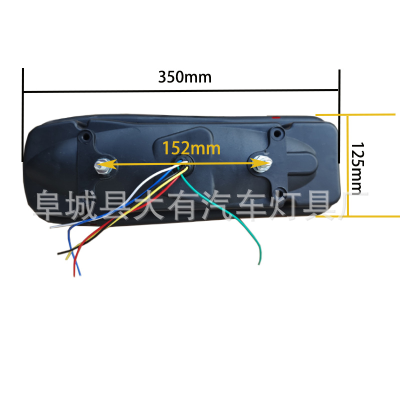 4.接线方法:黑色线负极,红色线刹车灯亮、蓝线行车灯亮、绿线后雾灯亮、白线倒车灯亮、黄线转向灯亮。