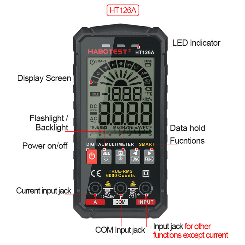 Huabo Заводской магазин HT126A мультиметр с цифровым дисплеем Высокоточный мини Универсальный Интеллектуальный измеритель электрика с защитой от ожогов