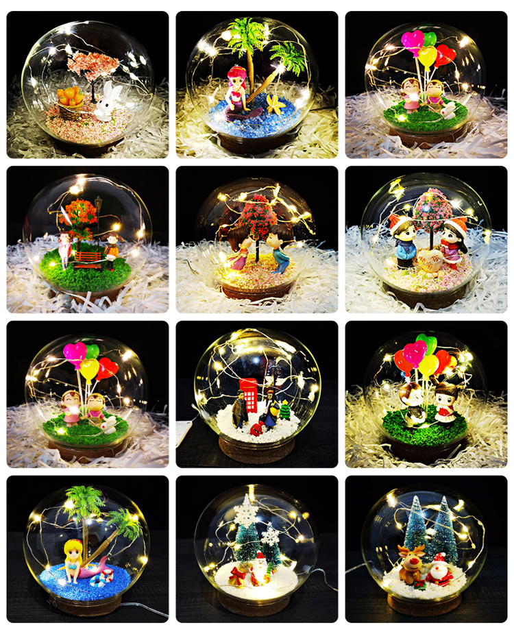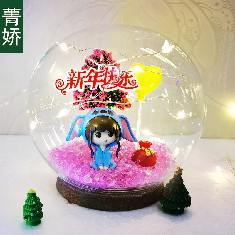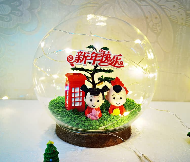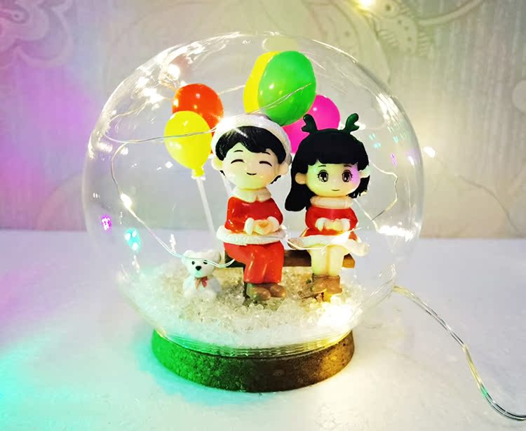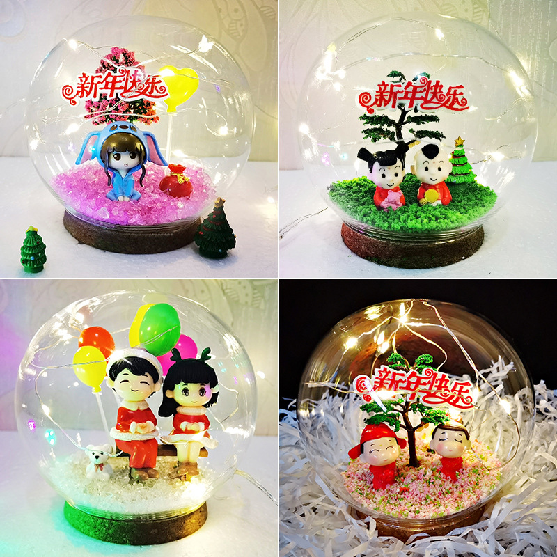Новогодний хрустальный шар лампа стекло микро пейзаж ручной работы DIY друзья пара подруги подарок креативное украшение бесплатная доставка