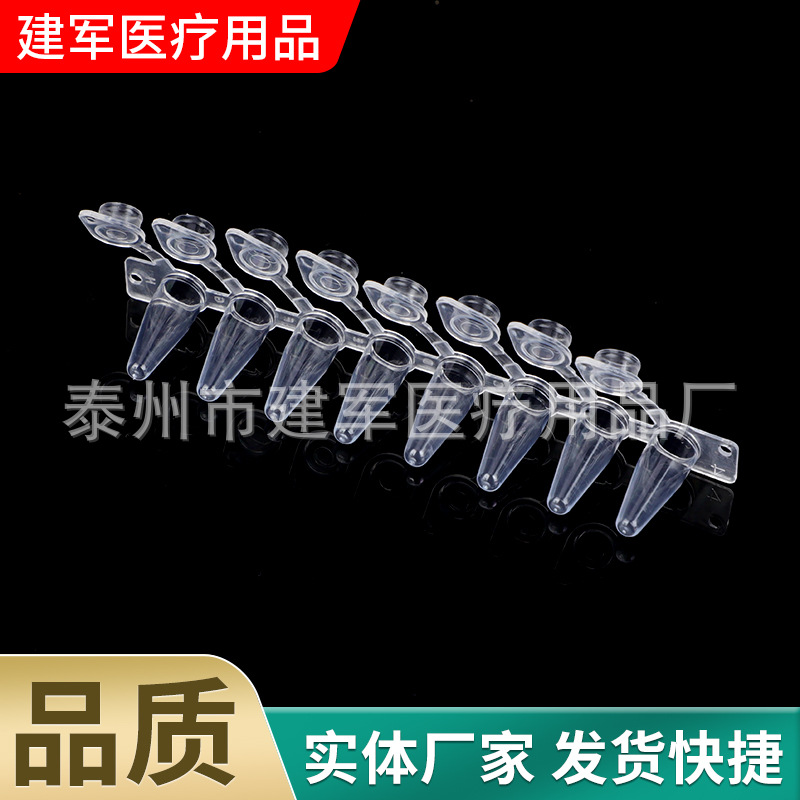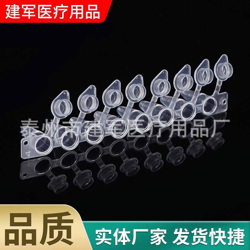 Восьмирядный ряд для ПЦР, восьмизвенная крышка для обнаружения ПЦР, прозрачная плоская крышка, низкая адсорбционная трубка из ПЦР, 8 трубок