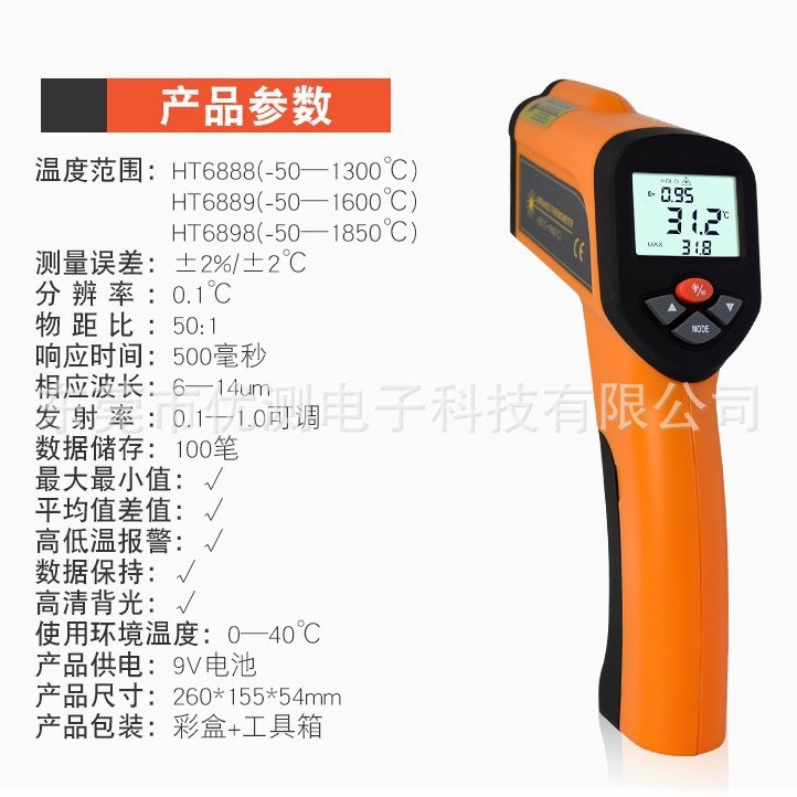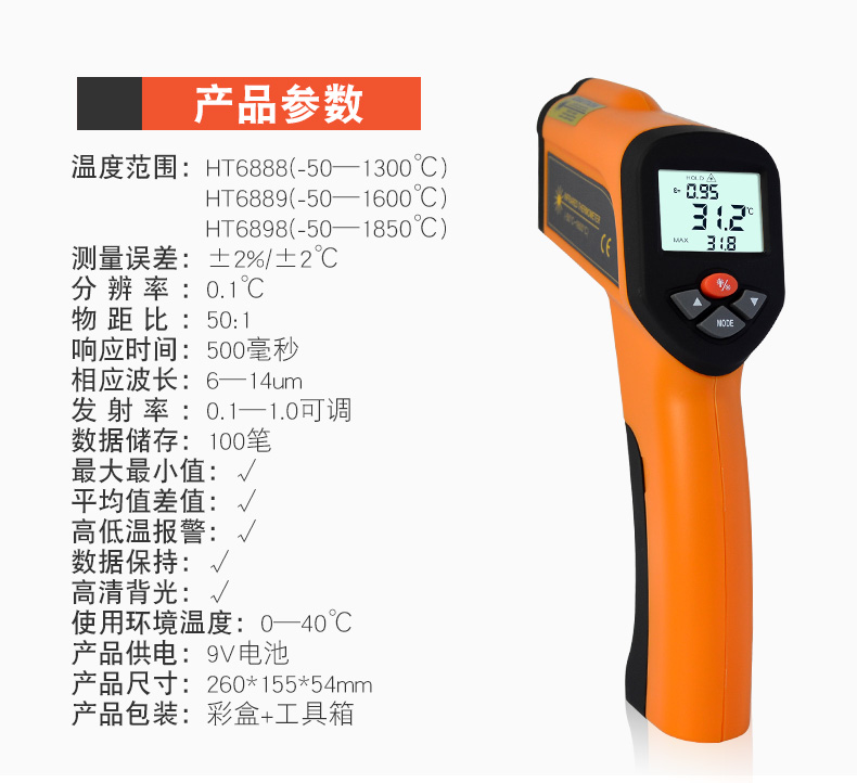 Xinsite HT6888 высокотемпературный инфракрасный термометр ручной термометр пистолет 1600 градусов промышленный цифровой термометр