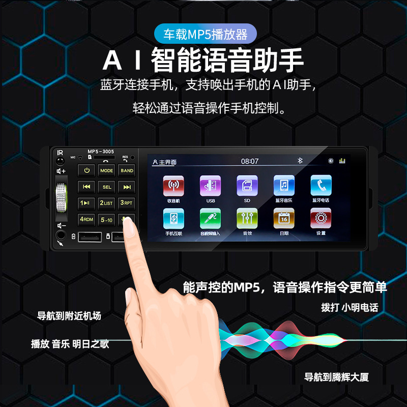 5.1寸高清屏幕车载蓝牙插卡MP5播放器可替代CD插卡机外观时尚大气
