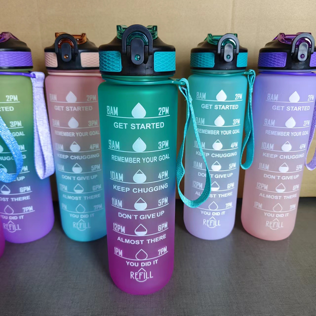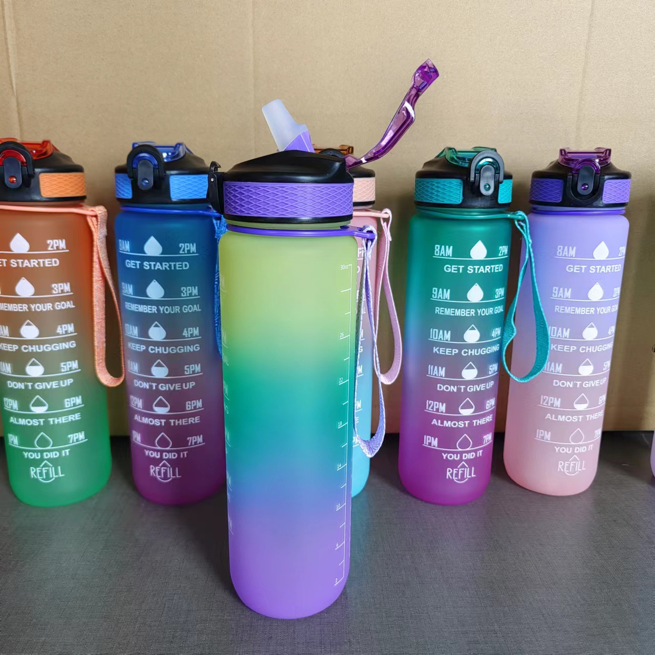Градиентный цвет 1000 мл чашка для воды матовая аэрозольная краска соломенная пластиковая чашка спортивная чашка пластиковая космическая чашка для спорта на открытом воздухе с выдвижной крышкой чайник пластиковая чашка оптом чашка для воды по индивидуальному заказу
