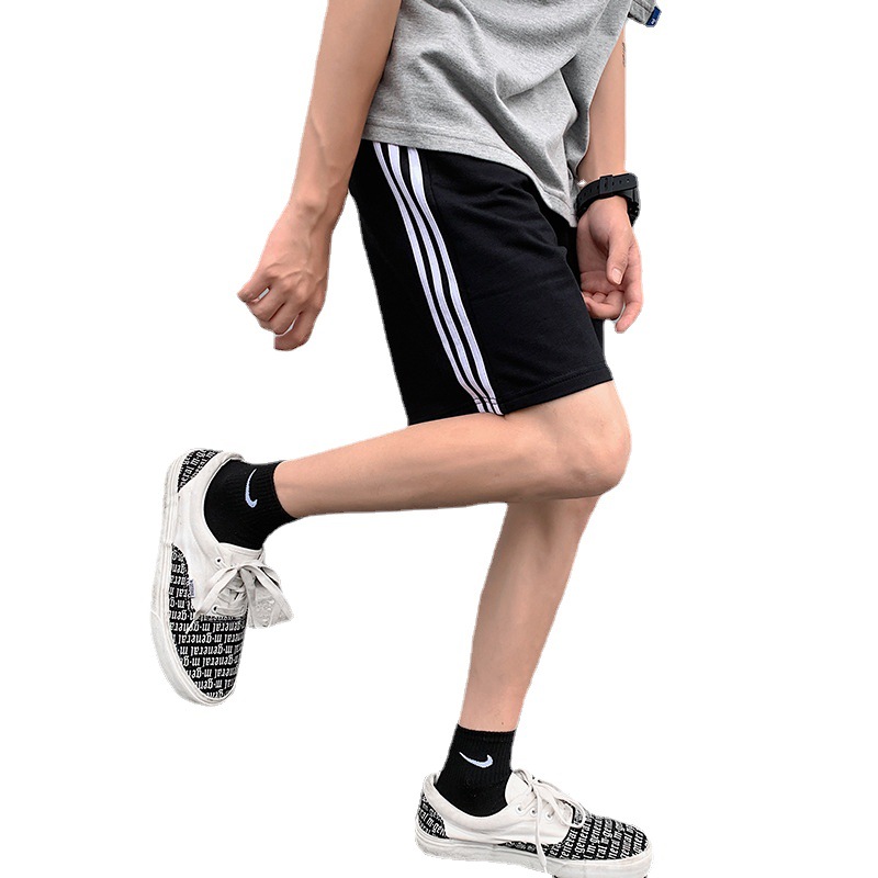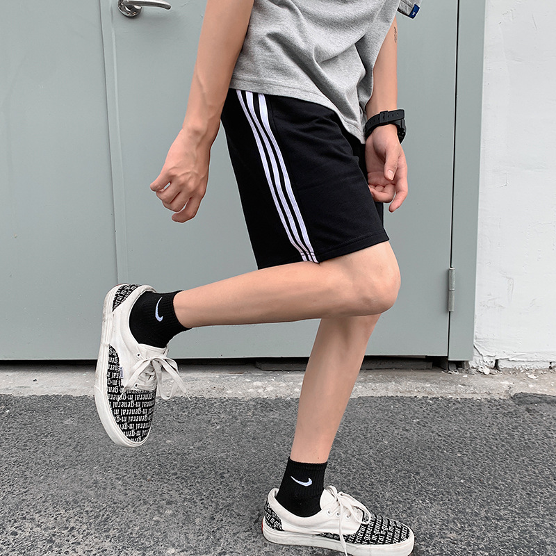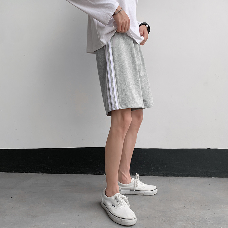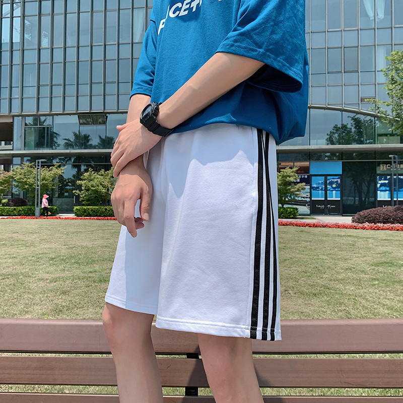 Летние спортивные шорты в гонконгском стиле Мужские студенческие Свободные повседневные спортивные шорты Пара полосатых прямых брюк Cross Border