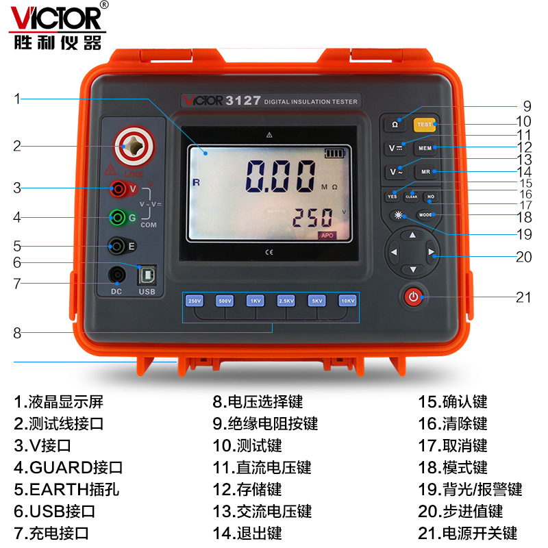 Victory VC3127 Высоковольтный испытатель сопротивления изоляции 10KV электронный цифровой мегаомметр 10000V качалка