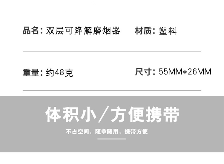 Пластиковая мельница для табака 55 мм, двухслойная, биоразлагаемая, для измельчения табачных листьев, ручная, двойной слой, экологически чистый материал