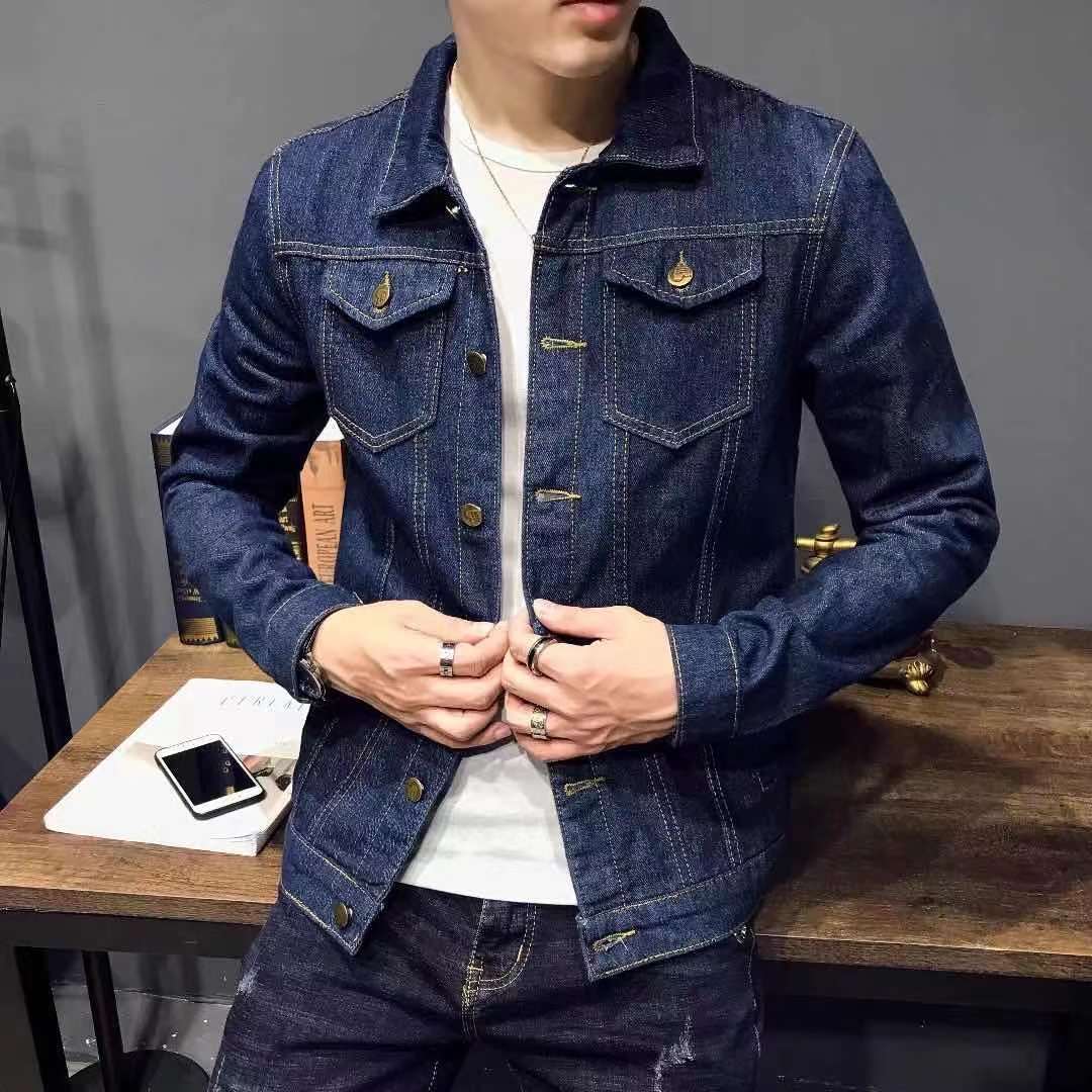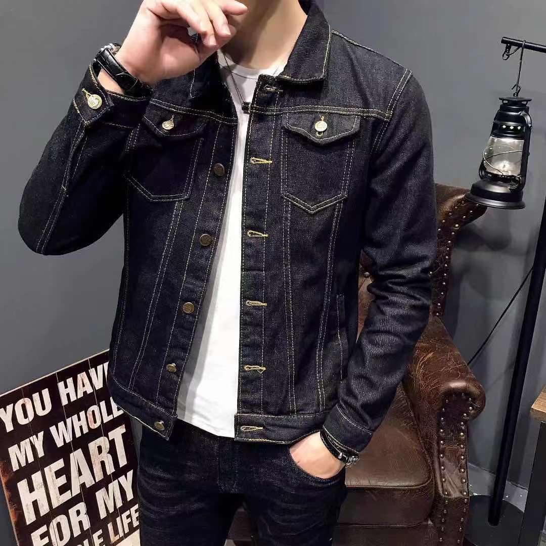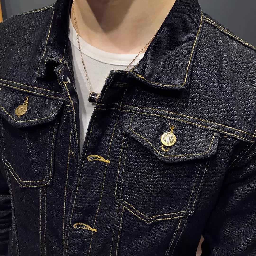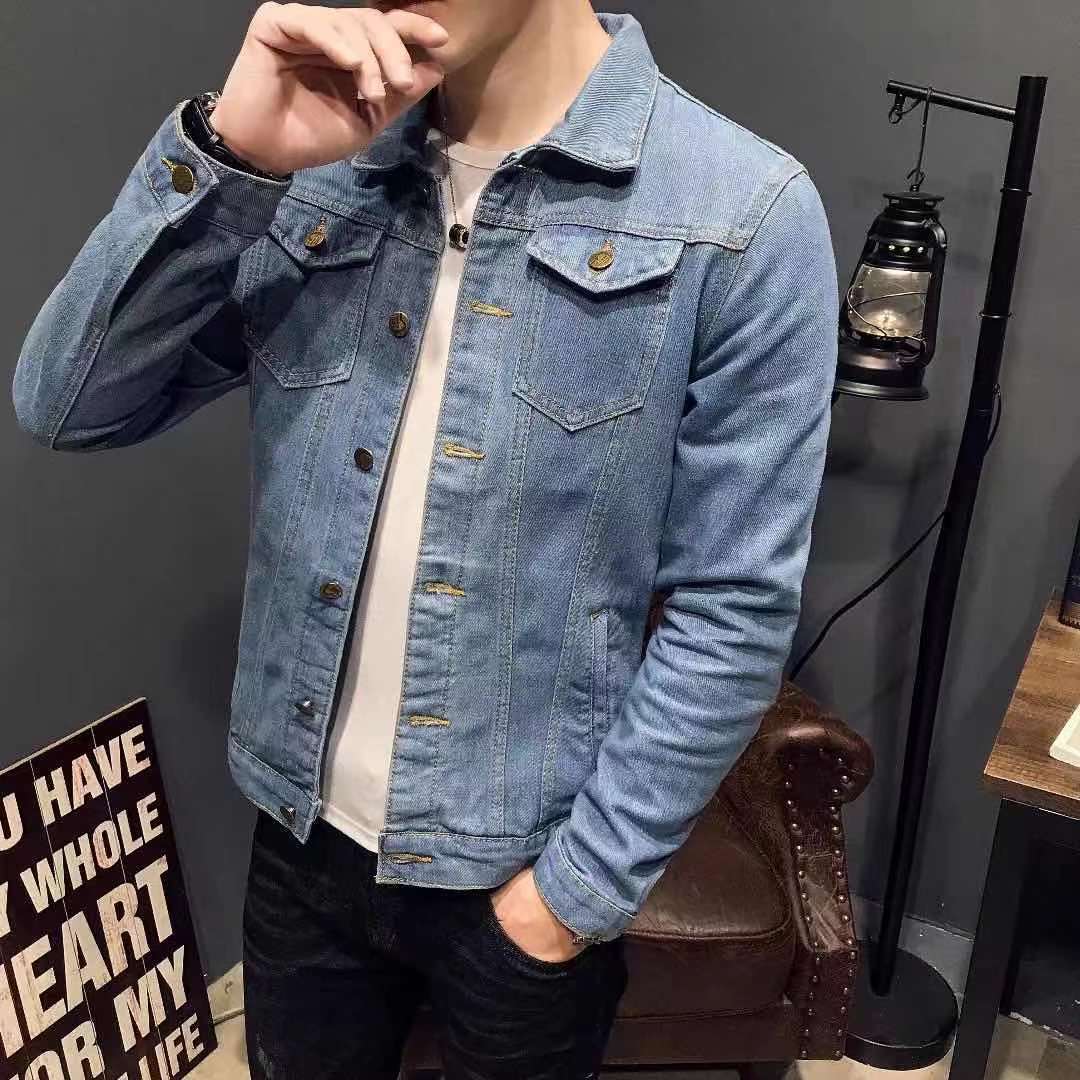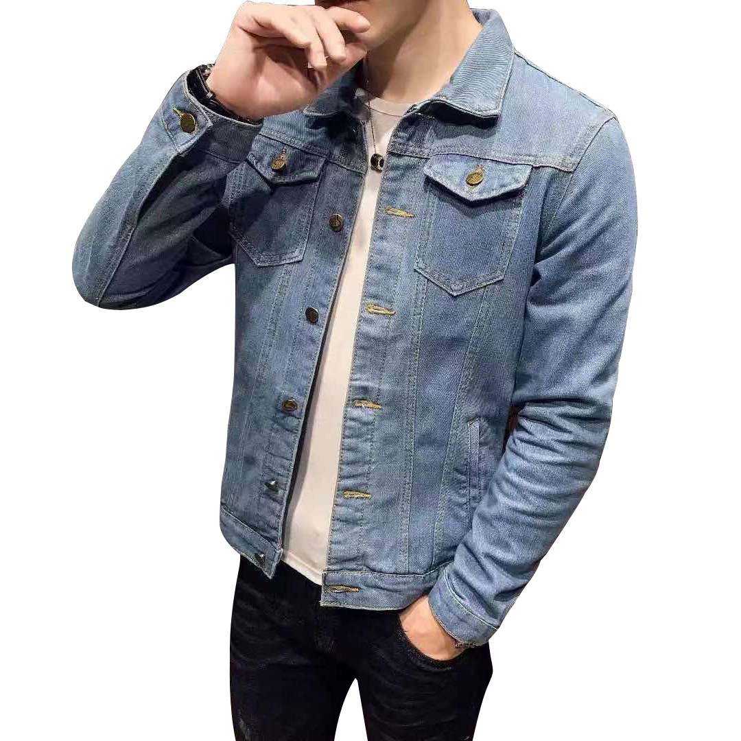 Мужское весенне-осеннее светло-голубое черное джинсовое пальто больших размеров, приталенная модная куртка в Корейском стиле, модный Повседневный Топ