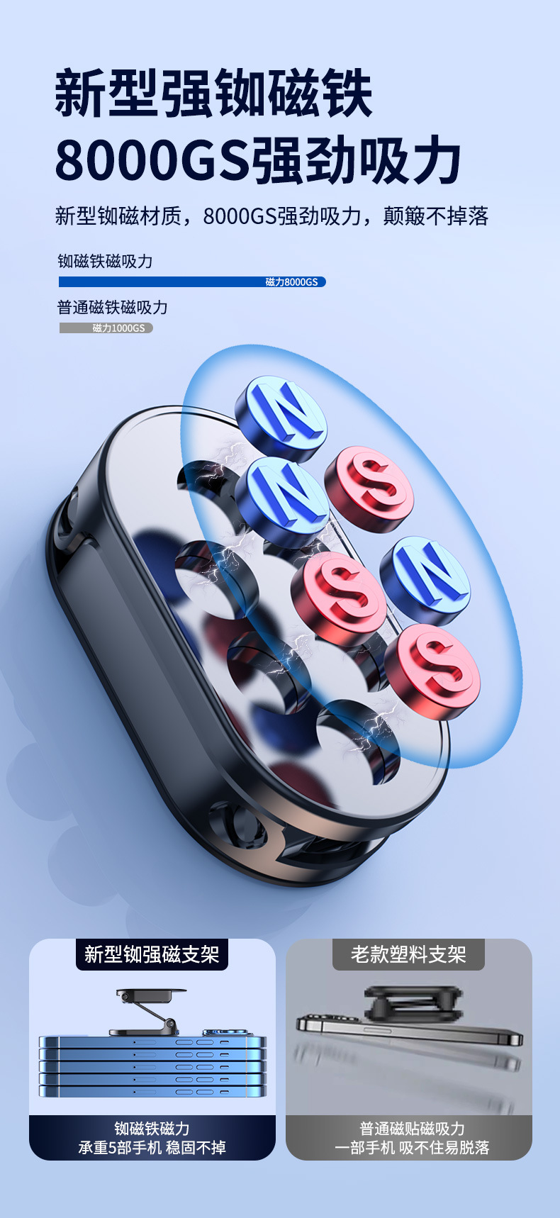 4.每套共6颗强磁,最大吸附力约达3.5KG