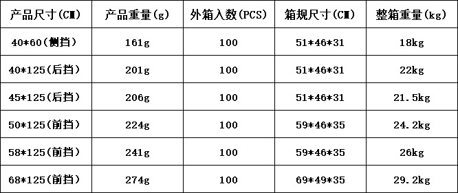 【产品尺寸】:40*60cm;40*125cm;45*125cm;50*125cm;58*125cm;68*125cm