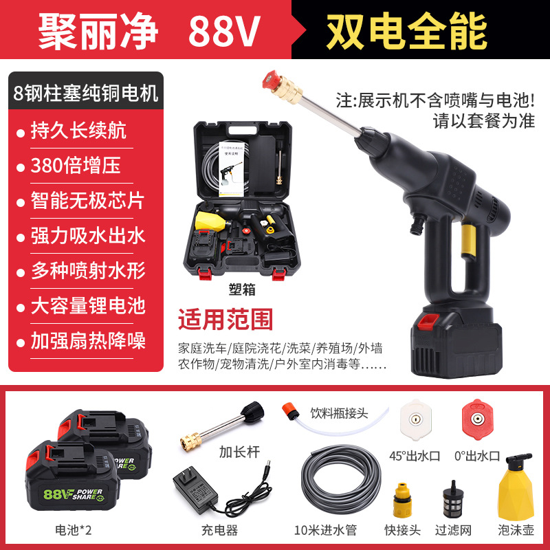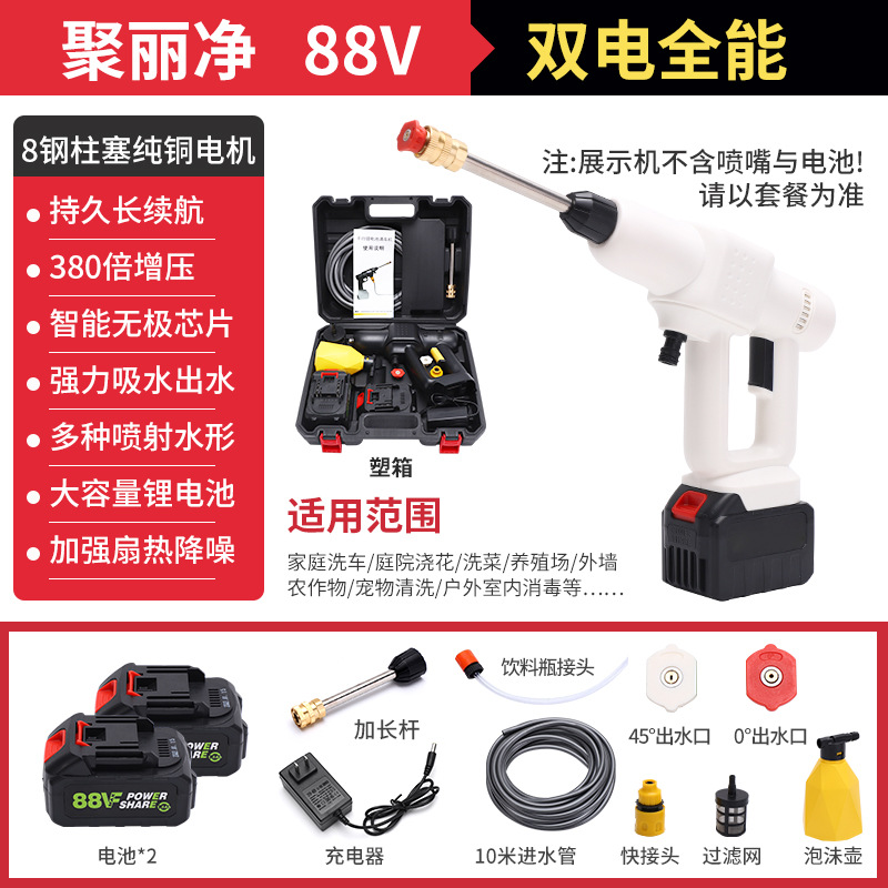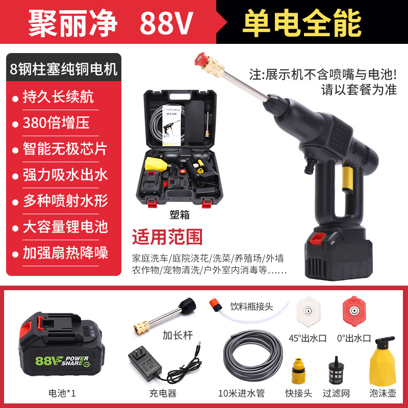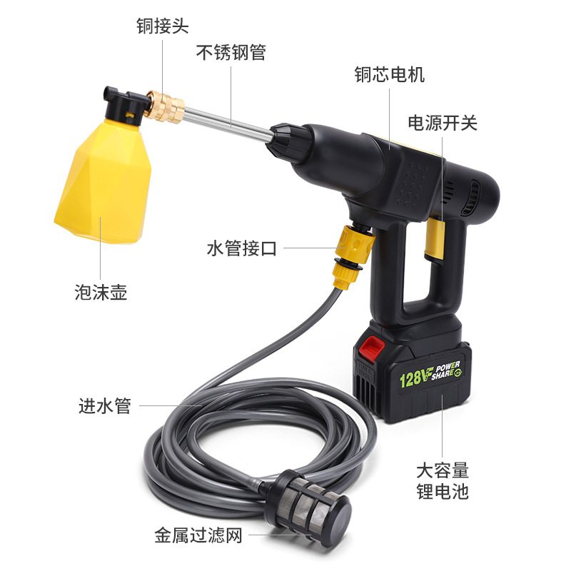 Автомобильная мойка с литиевой батареей, портативная беспроводная автомойка, водоструйный пистолет высокого давления, электрический инструмент для мойки автомобилей.