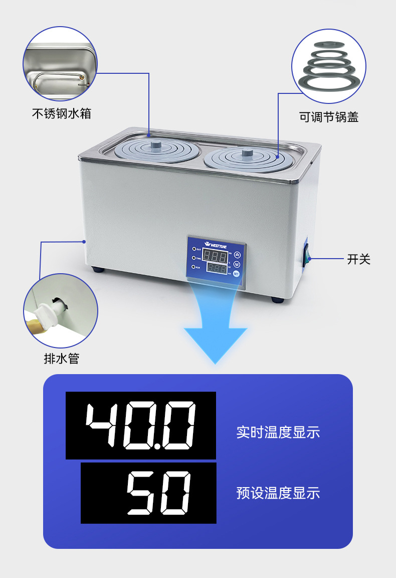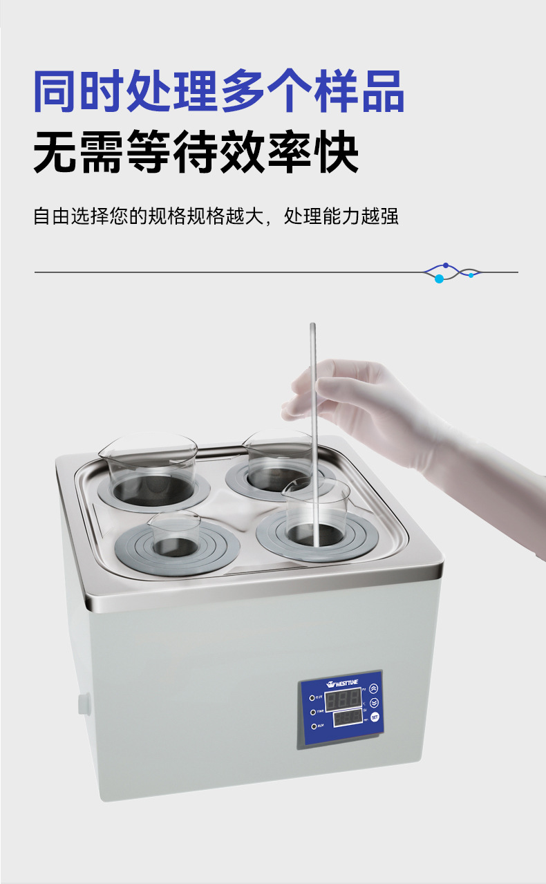 Электрическая водяная баня с цифровым дисплеем, поддержанием постоянной температуры, защитой от выкипания и сухого нагрева, с таймером, одноканальная/многоканальная, из нержавеющей стали
