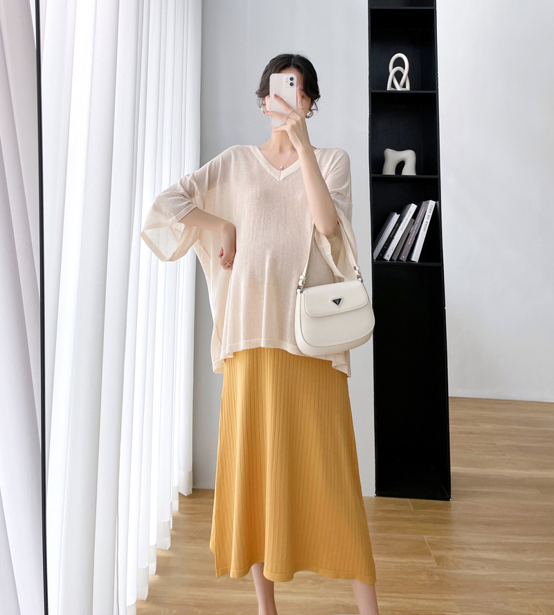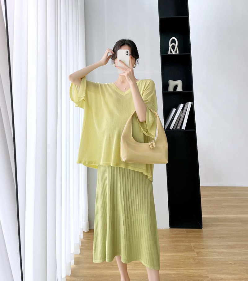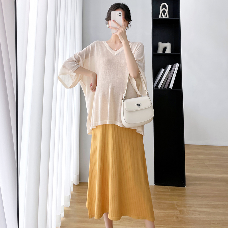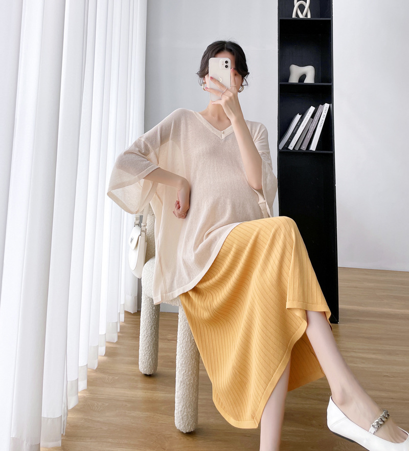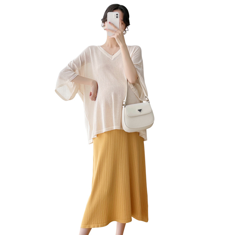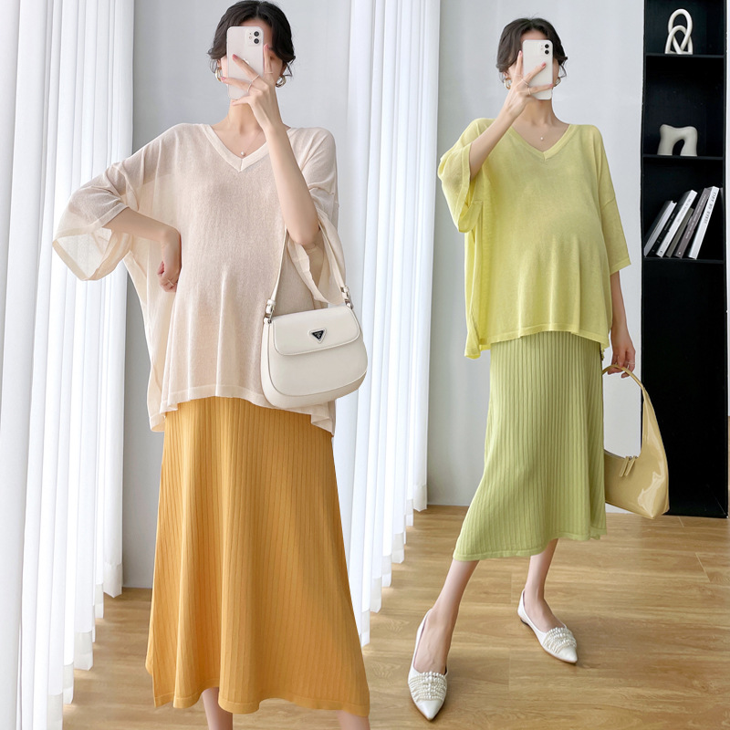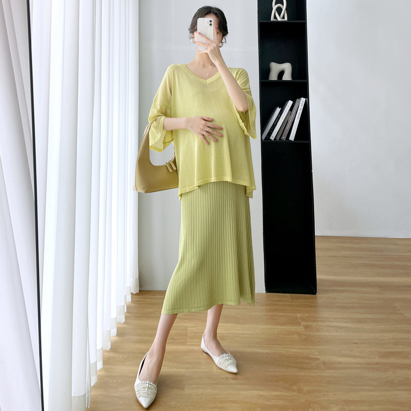 Летнее платье-костюм для беременных, популярная в Интернете Летняя вязаная юбка-слинг из ледяного шелка для кормления грудью, из двух частей, Мода для беременных