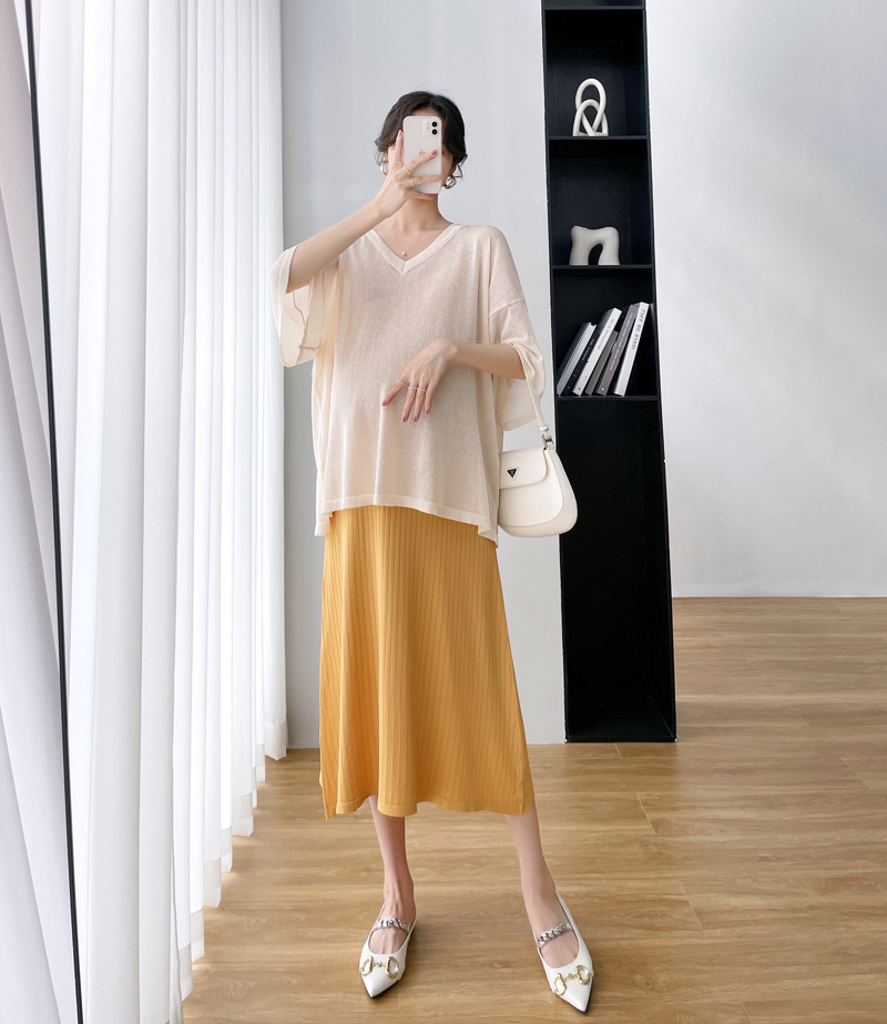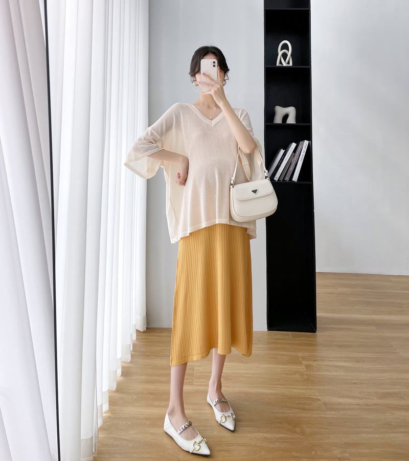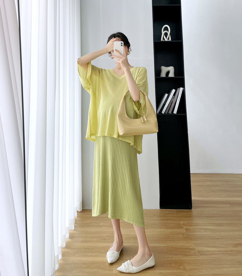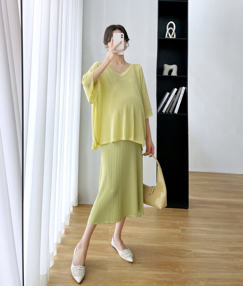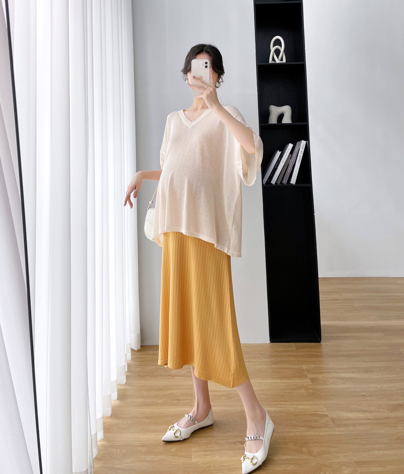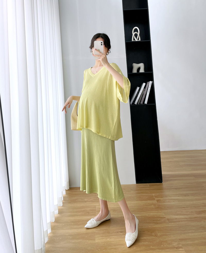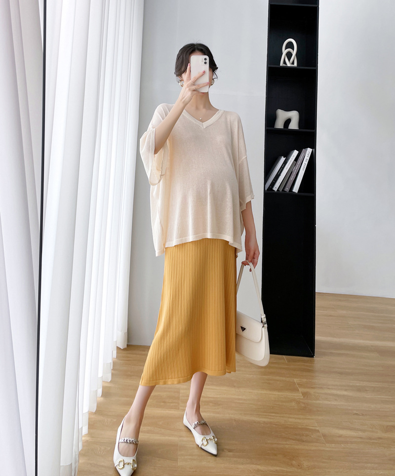 Летнее платье-костюм для беременных, популярная в Интернете Летняя вязаная юбка-слинг из ледяного шелка для кормления грудью, из двух частей, Мода для беременных