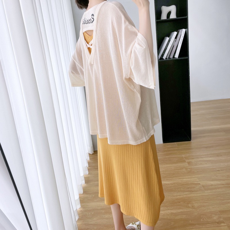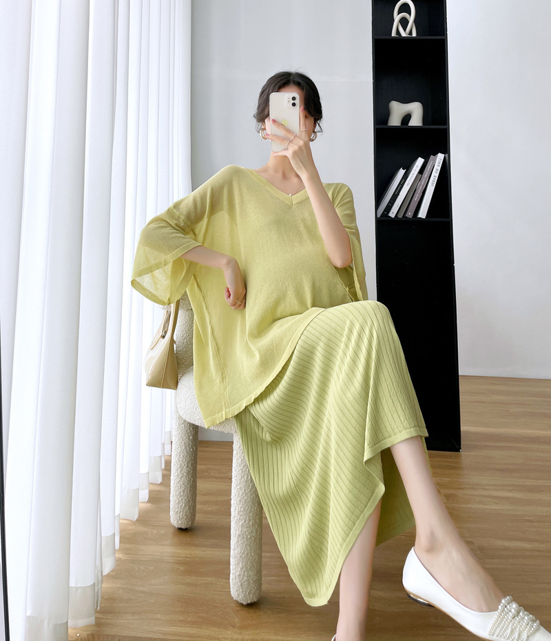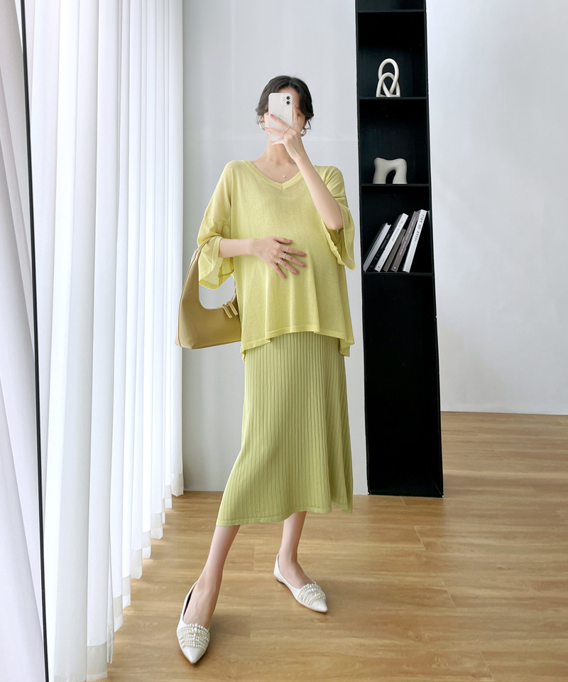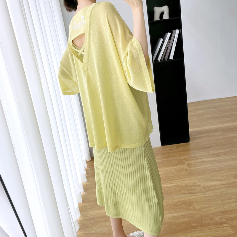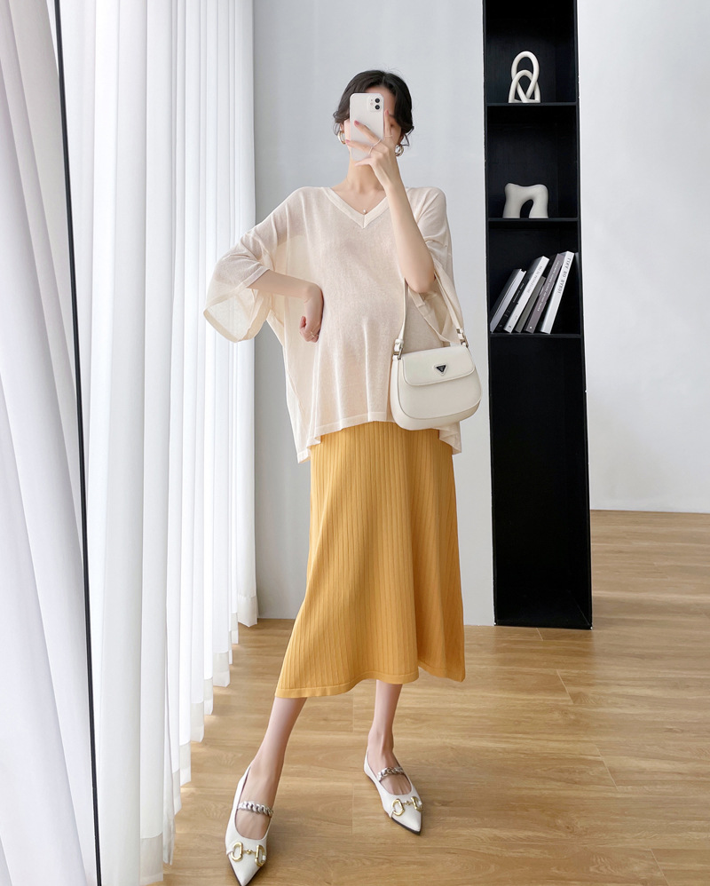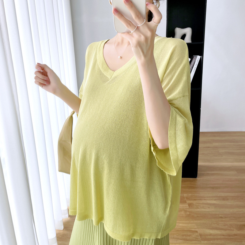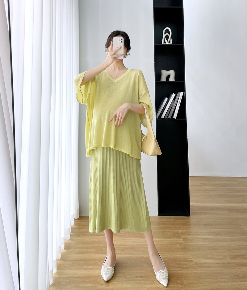 Летнее платье-костюм для беременных, популярная в Интернете Летняя вязаная юбка-слинг из ледяного шелка для кормления грудью, из двух частей, Мода для беременных