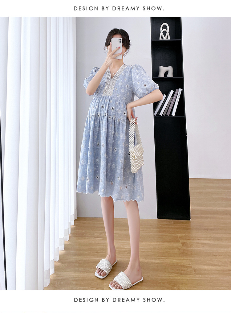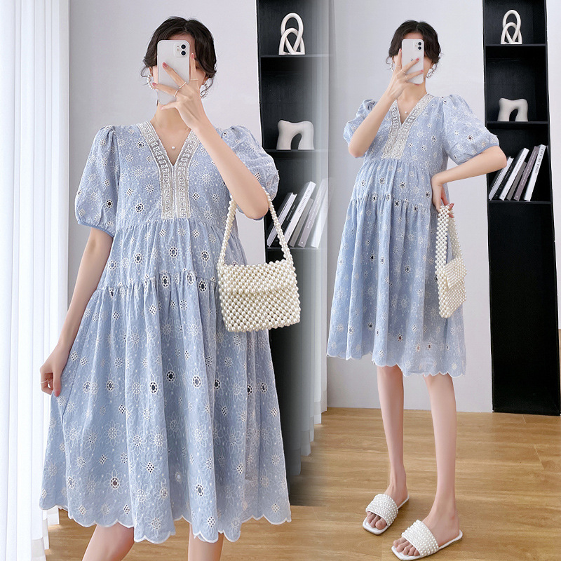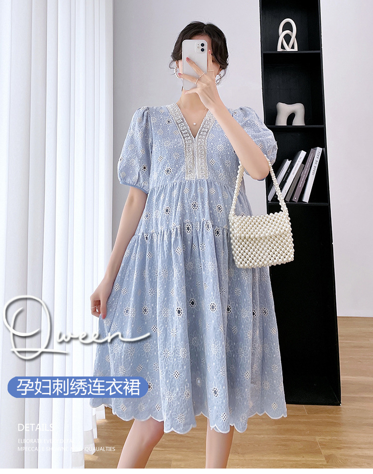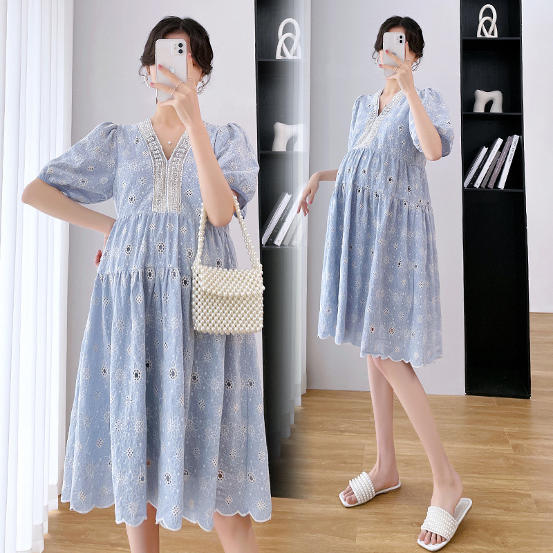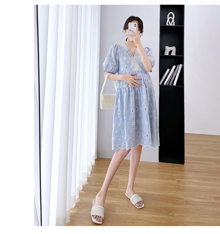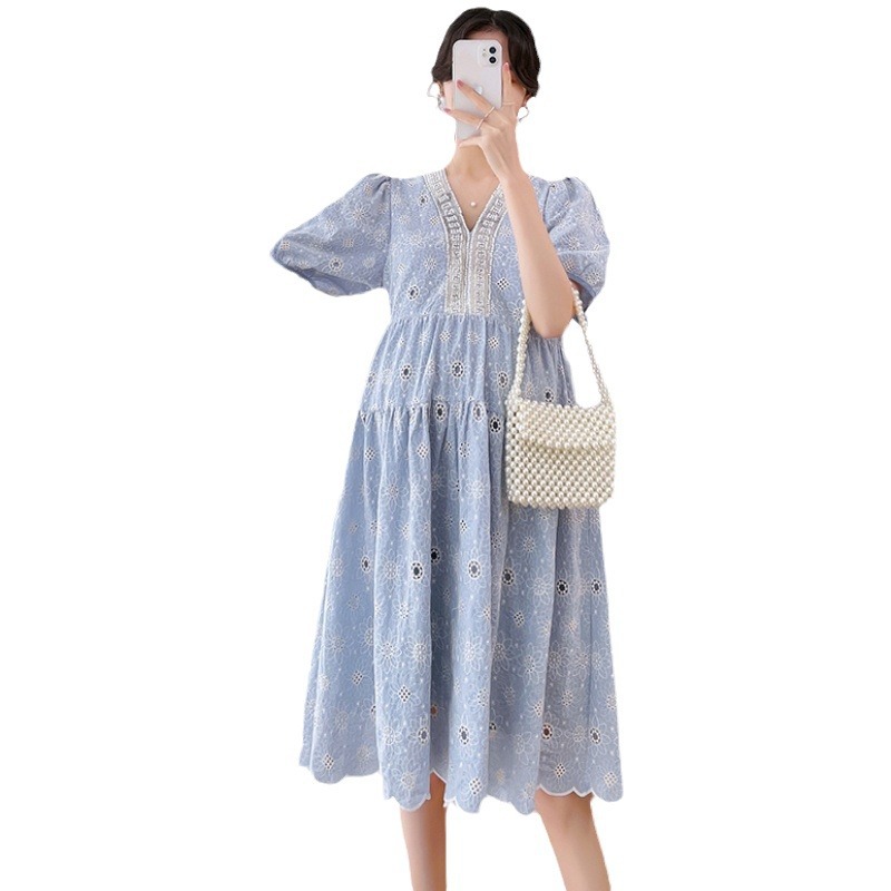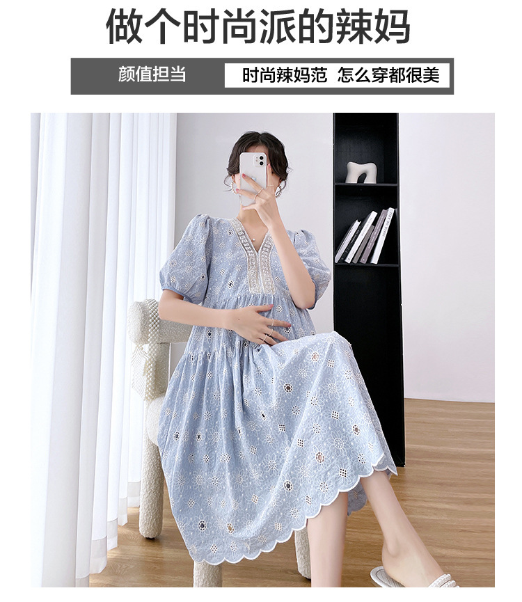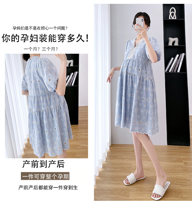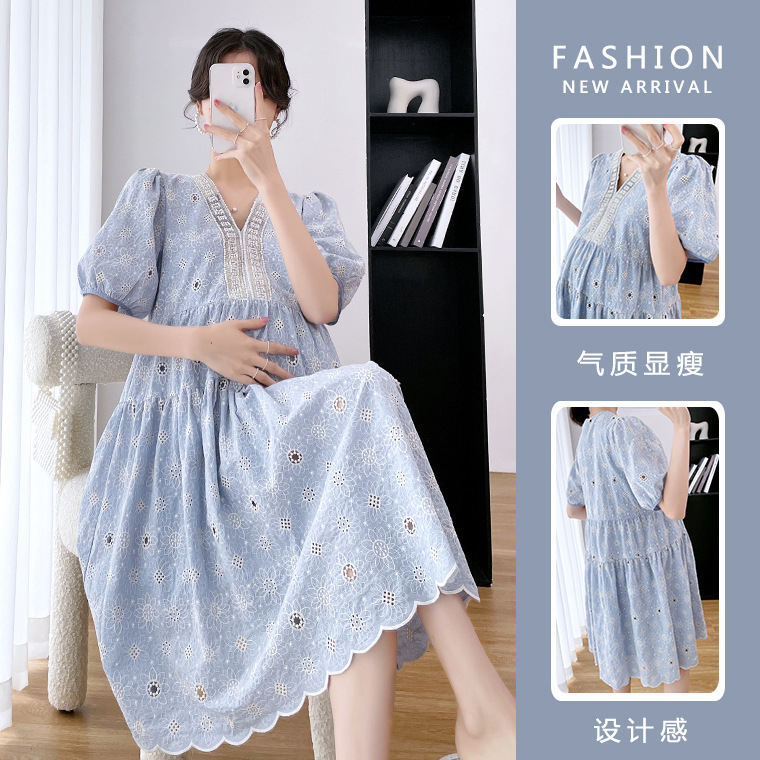 Платье для беременных 2022 Новое длинное кружевное шитье в западном стиле Интернет Популярная Мода Модная летняя юбка Hot Mom