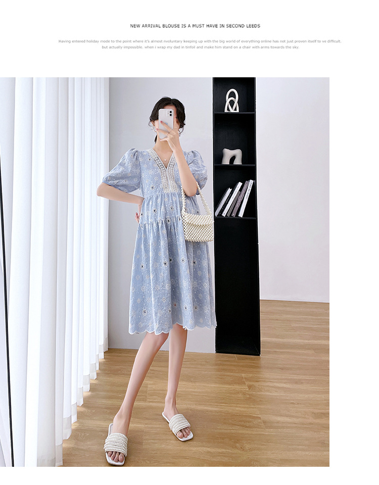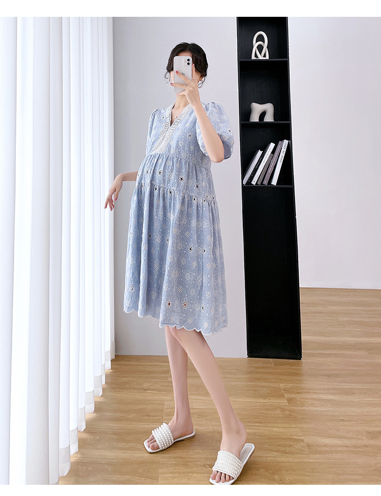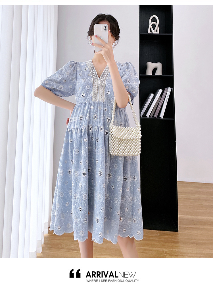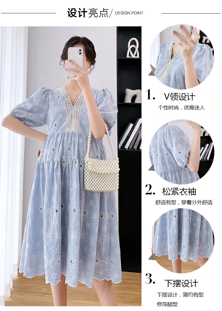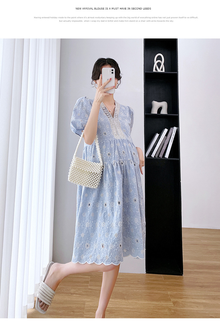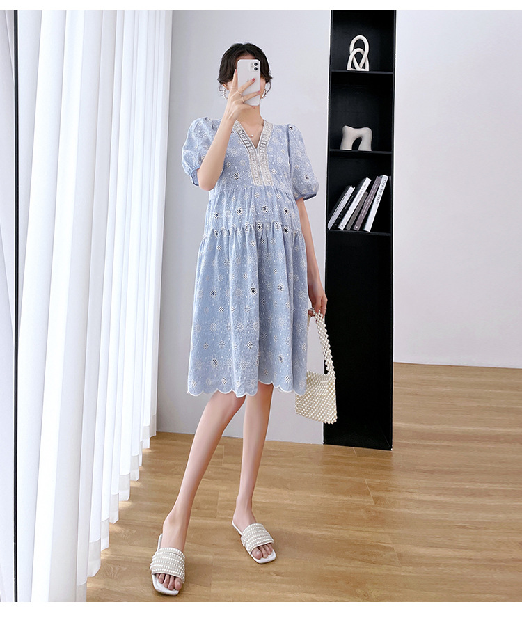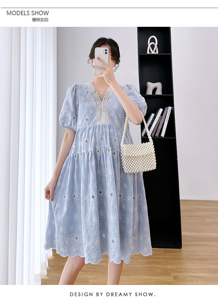 Платье для беременных 2022 Новое длинное кружевное шитье в западном стиле Интернет Популярная Мода Модная летняя юбка Hot Mom