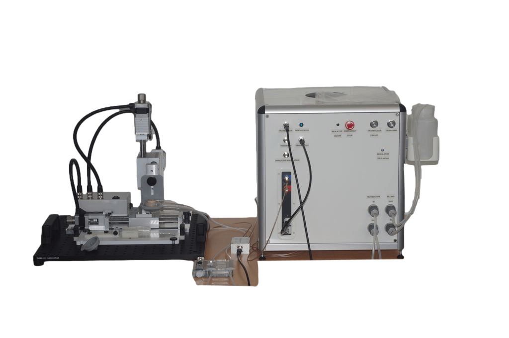 TT-50小动物聚焦超声爆破系统 是IGT公司专为打开小动物血脑屏障而研发设计。该系统可以通过输出不同频率的波形信号,联合血管注射微泡,可逆性的打开小动物血脑屏障,同时还具有回声监测的功能。可用于实验室小动物脑内药物输送,神经调节、超声感应材料等方面的科学研究。