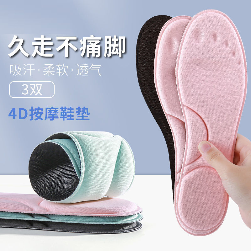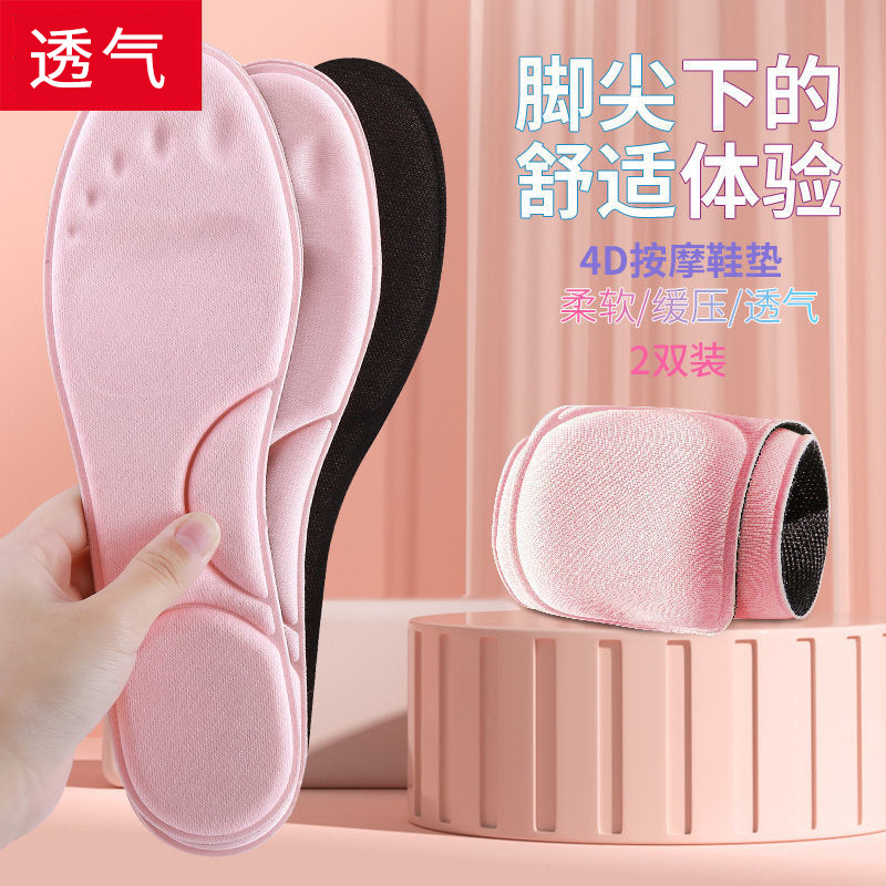 Массажные спортивные стельки 4D, в наличии на складе производителя, женские, влагопоглощающие, утолщенные, амортизирующие, дышащие, с мягкой подошвой для длительного стояния.