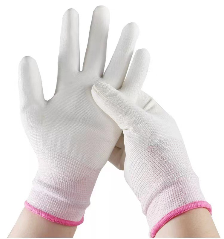 PU с покрытием пальмовые перчатки белые нейлоновые пыльные электронные заводы для работы антистатические погружные резиновые перчатки для защиты труда