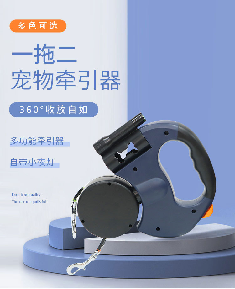 Автоматическая тяговая веревка для домашних животных, двусторонняя телескопическая цепочка для собак, поводок для собак «один-два», веревка для выгула собак «два в одном», оптовая продажа