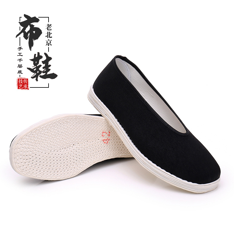 Тканевая обувь Old Beijing, мужская обувь ручной работы из лазаньи, черная Тканевая обувь в стиле ретро, повседневная нескользящая обувь из чистой ткани с круглым горлом