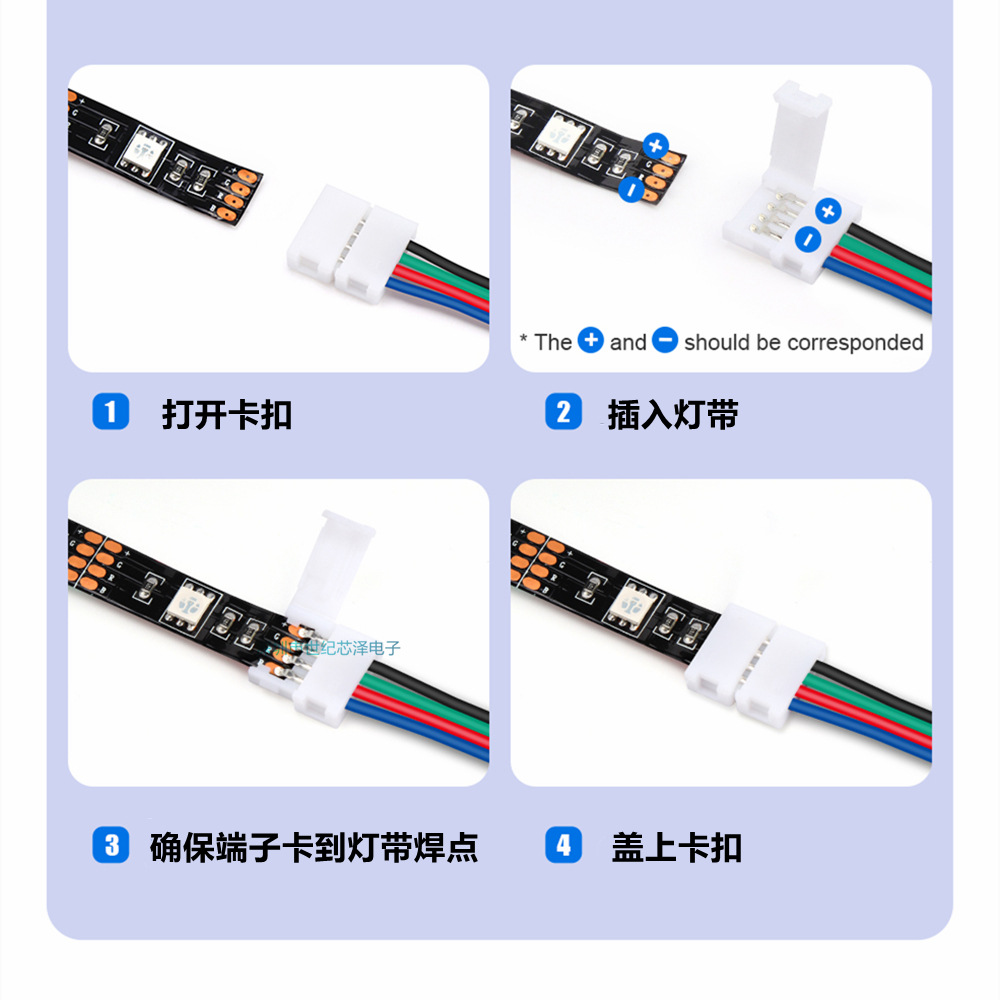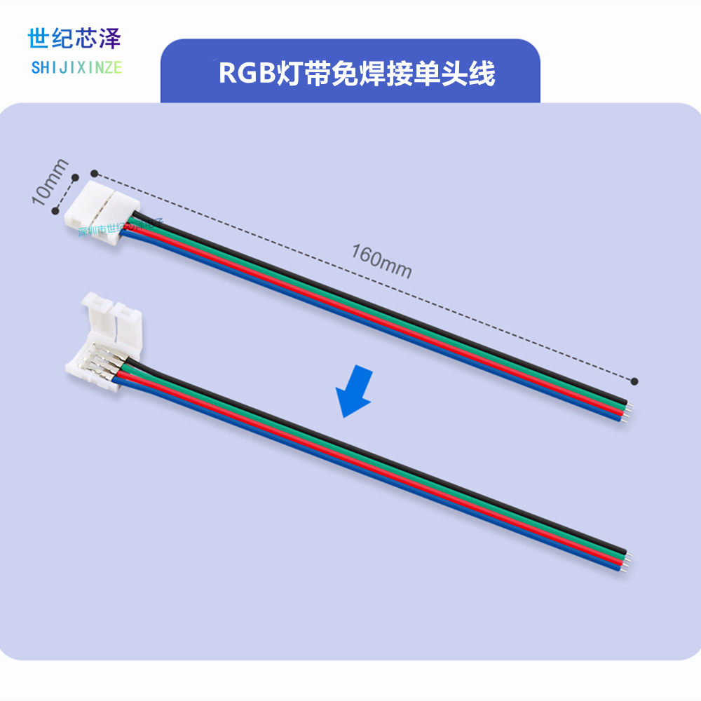 RGB красочный голый лист световой полосы бесшовный соединительный провод 4P10mm одноголовый провод Низковольтный 5050RGB лампа с шнур питания