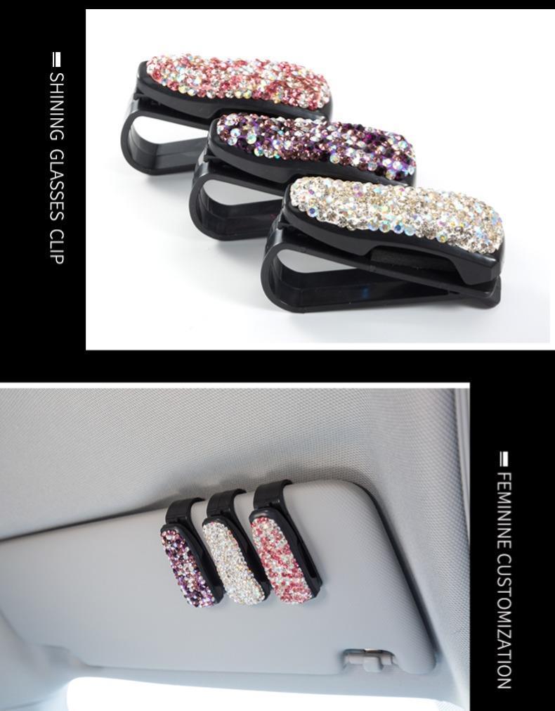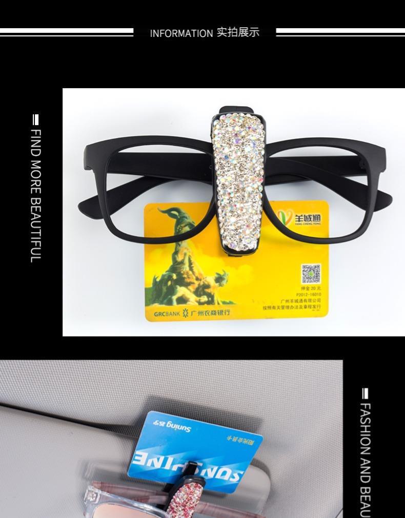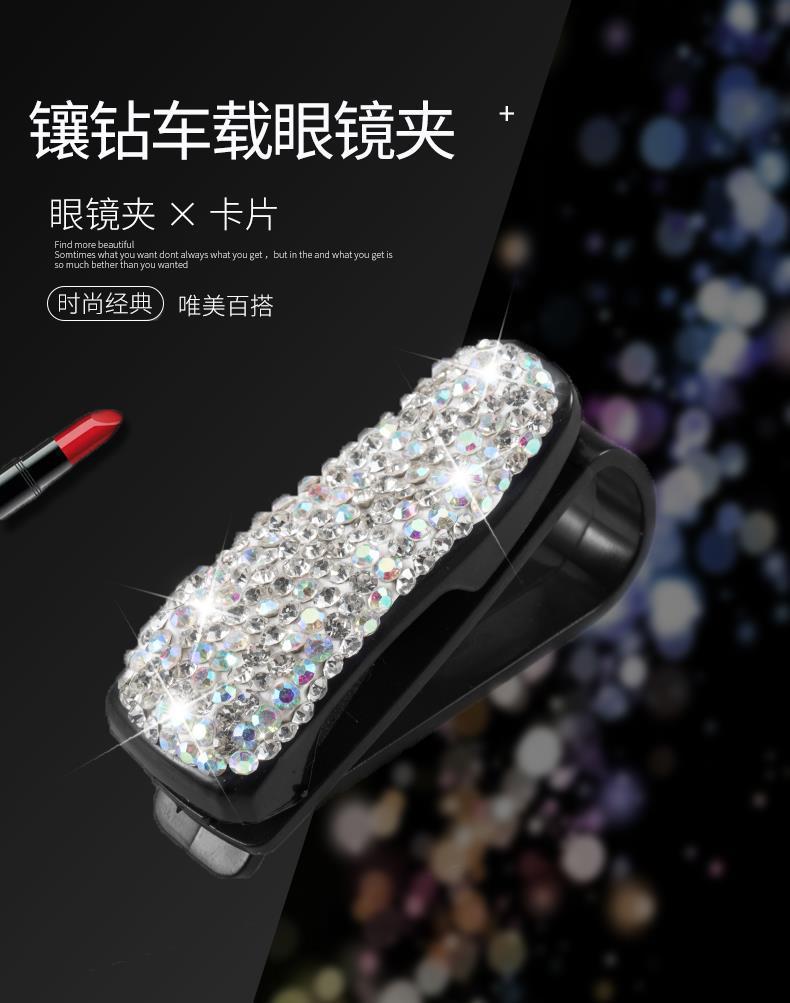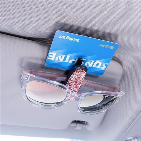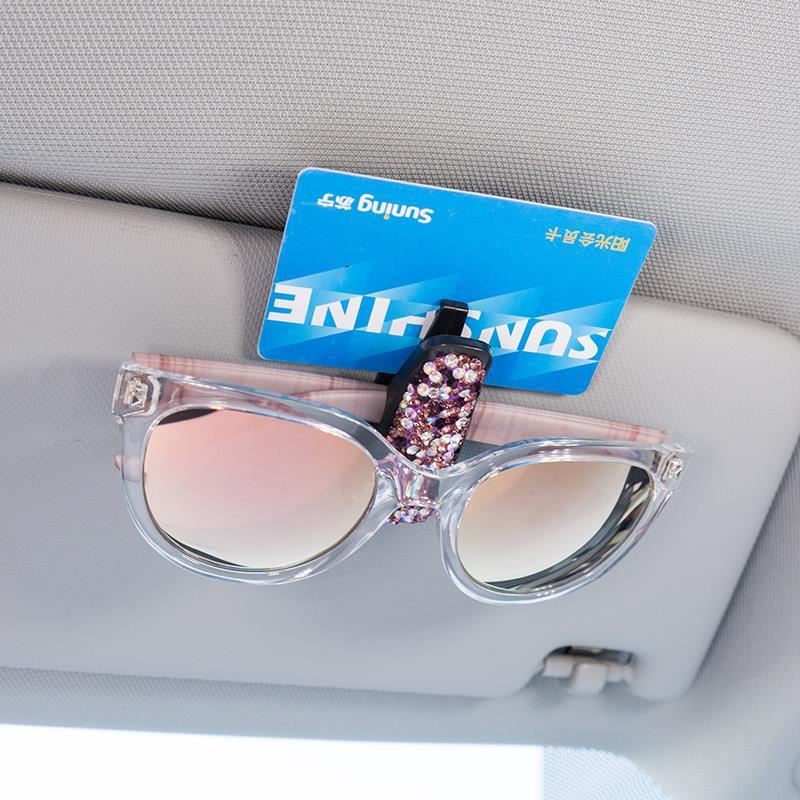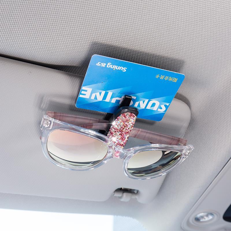 Автомобильный зажим для очков Многофункциональный Автомобильный держатель для солнцезащитных очков Автомобильная коробка для глаз Симпатичный женский автомобильный зажим для солнцезащитного козырька с бриллиантами