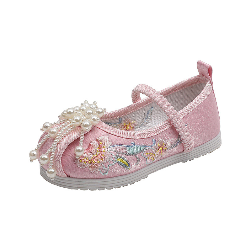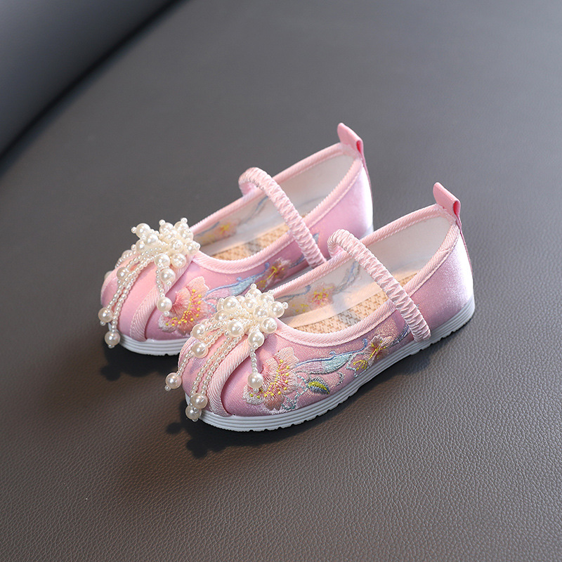 Детская Тканевая обувь в китайском стиле, эластичная старинная одежда, обувь с вышивкой для больших детей, обувь ханьфу, жемчужная эластичная антикварная обувь