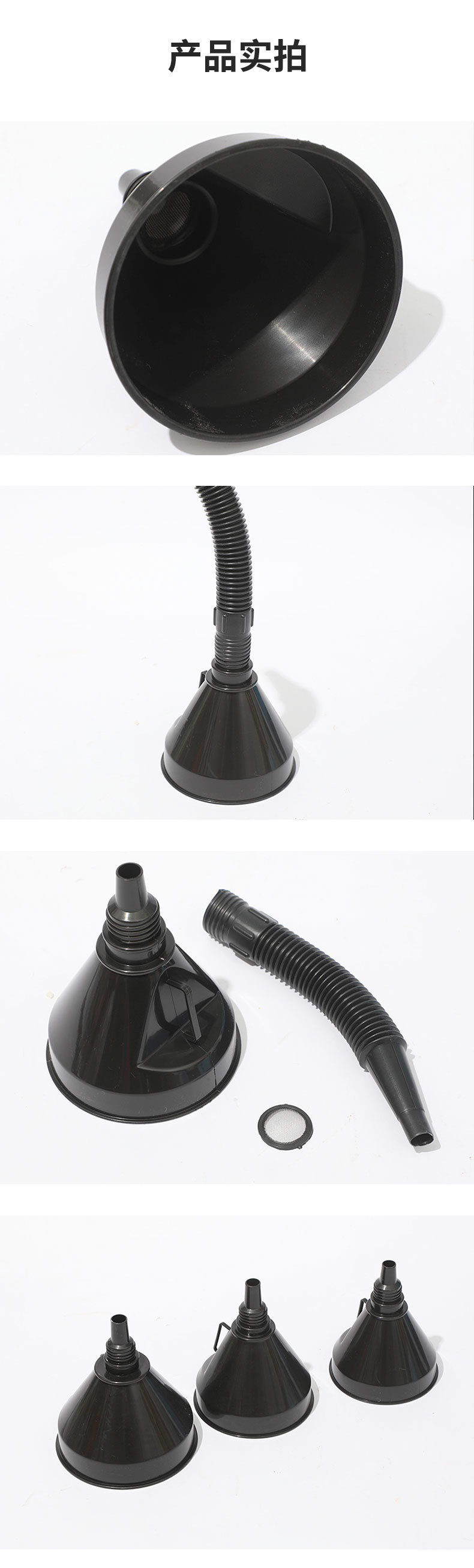 Новая утолщенная воронка для топлива, черная, большие, средние и малые размеры, для бензина, моторного масла, топливная воронка