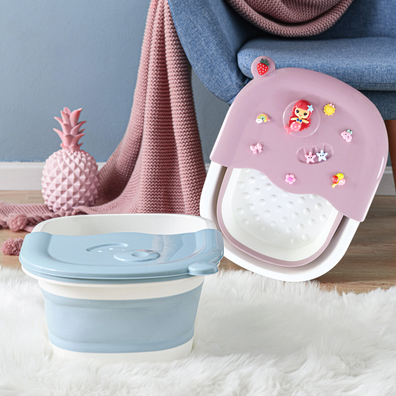 Мультяшное милое детское ведро для ног, складное глубокое ведро с подогревом и крышкой, умывальник для ног, студенческое общежитие, массажная ванна для ног