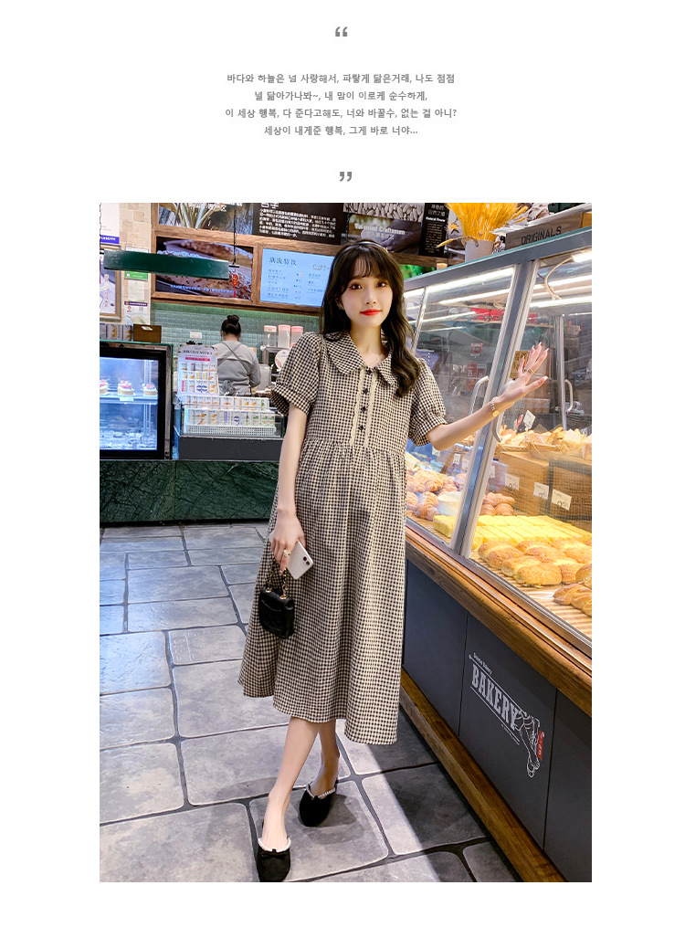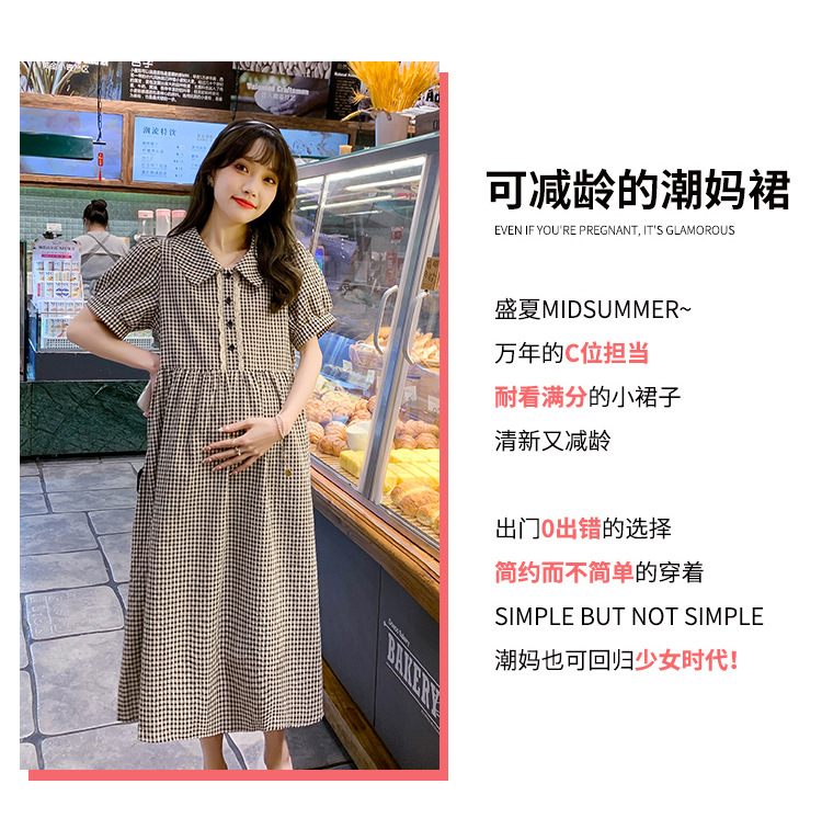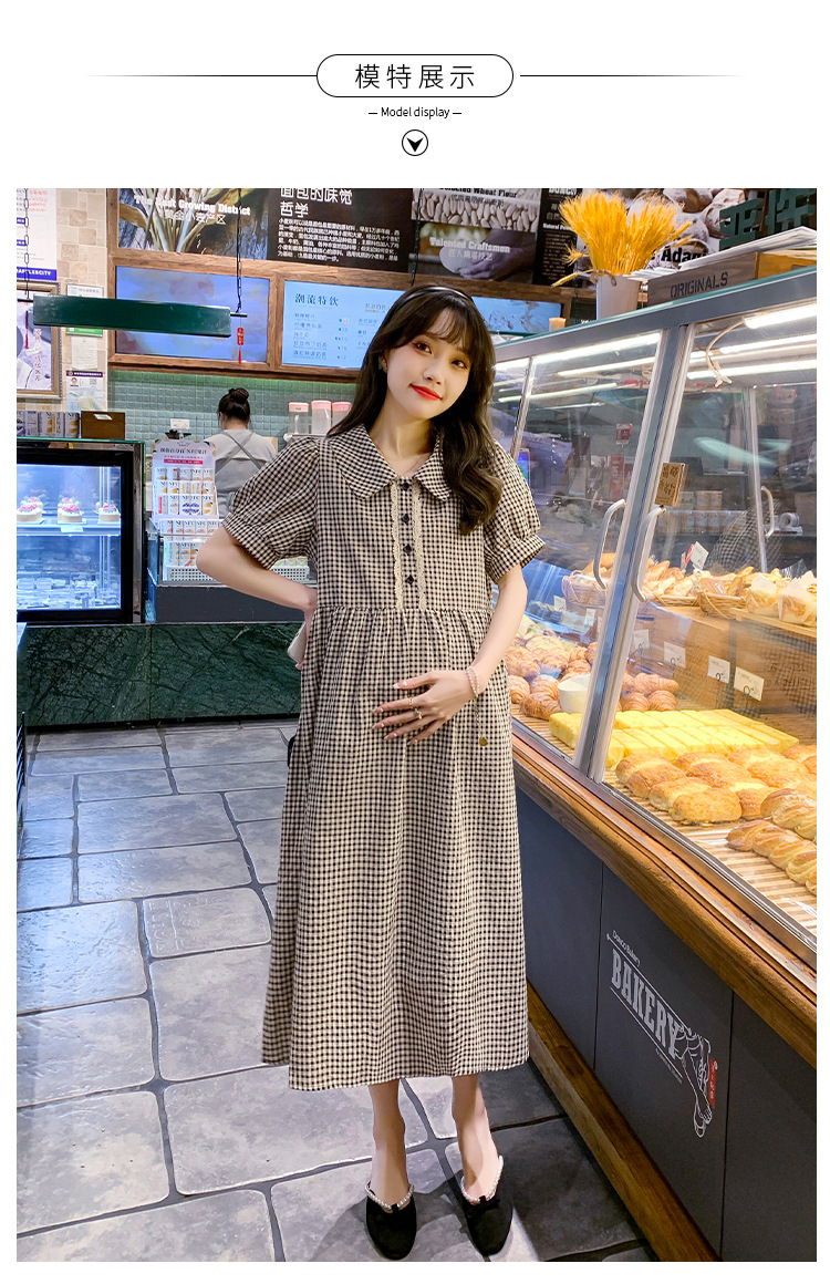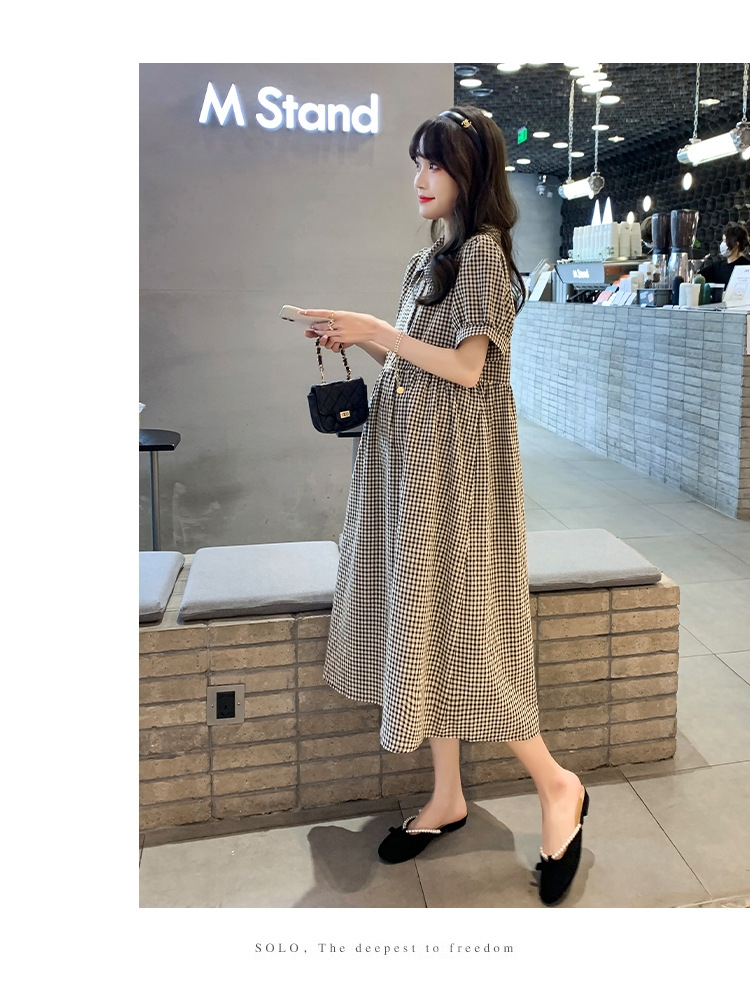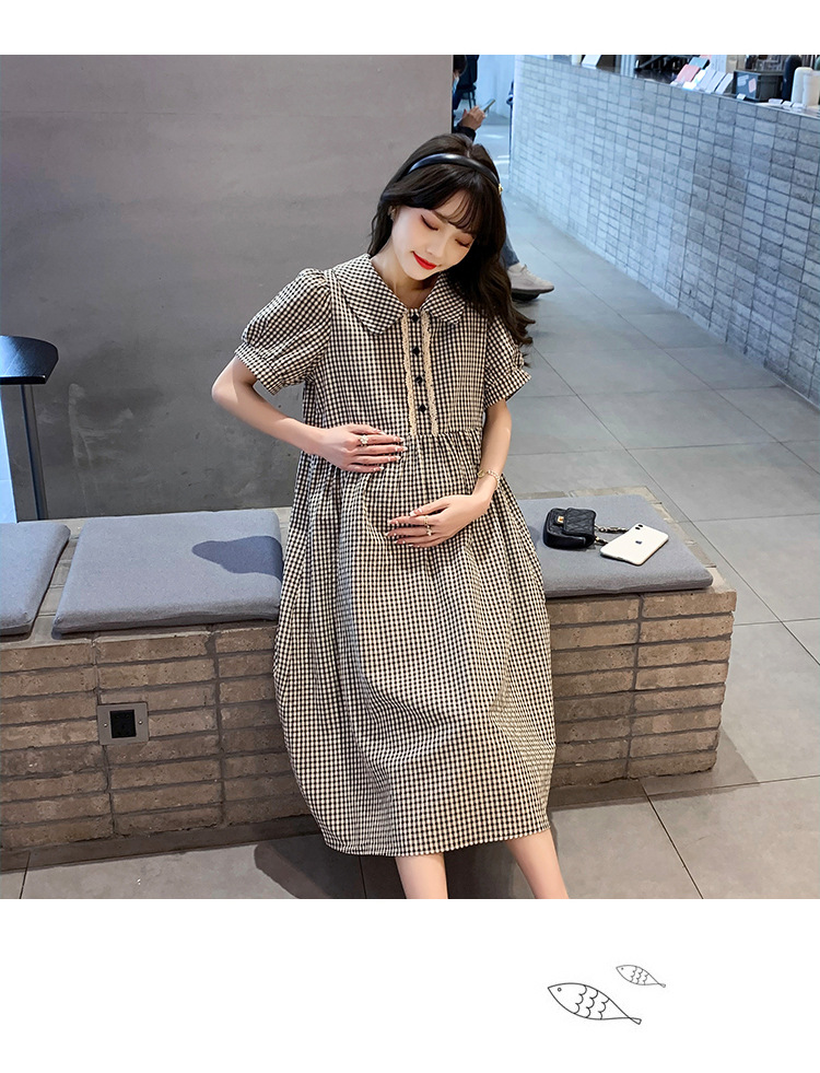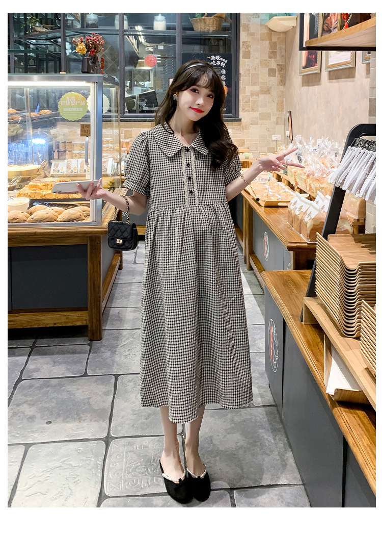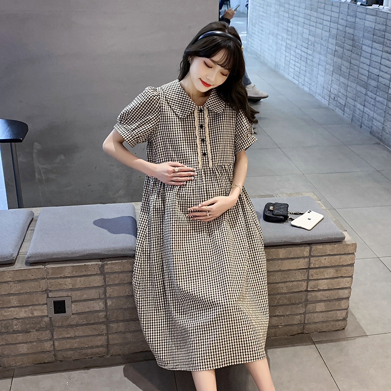 Платье материнства Летнее сладкое ретро платье материнства свободные японские черно-белые клетчатые куклы воротник платье беременной матери