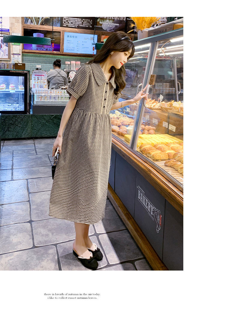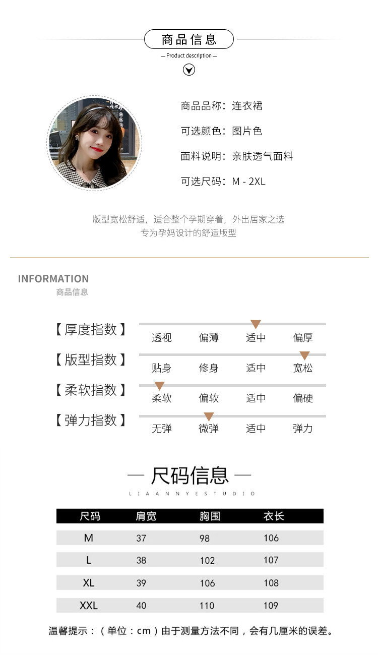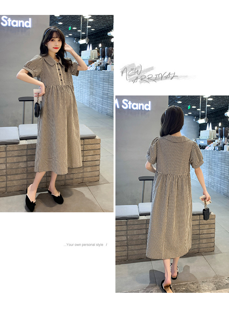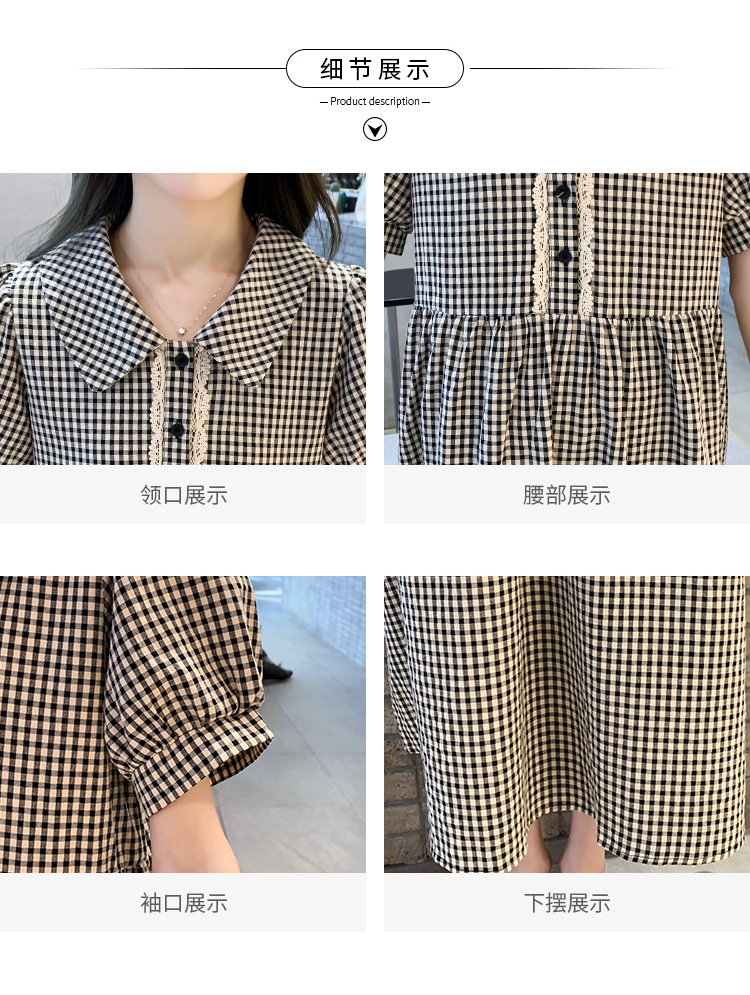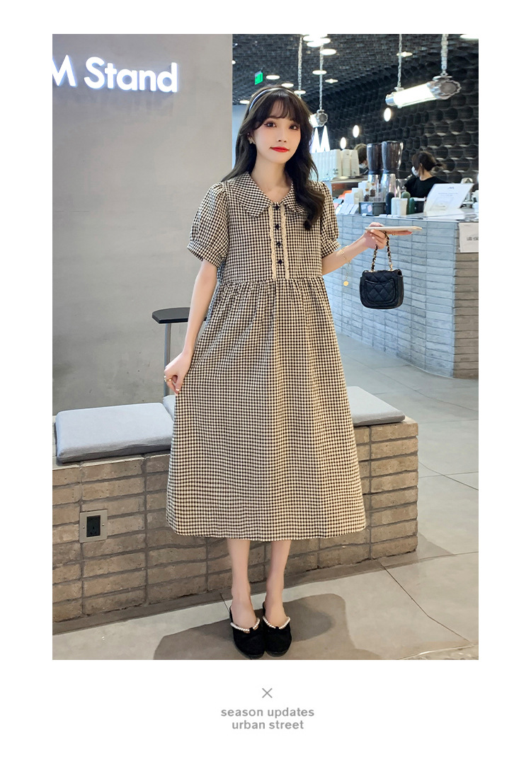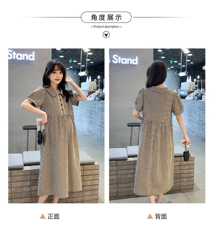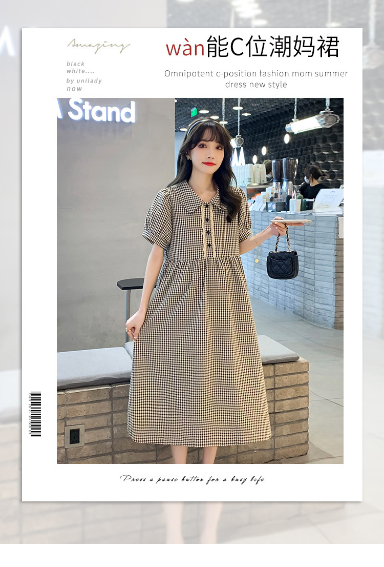 Платье материнства Летнее сладкое ретро платье материнства свободные японские черно-белые клетчатые куклы воротник платье беременной матери