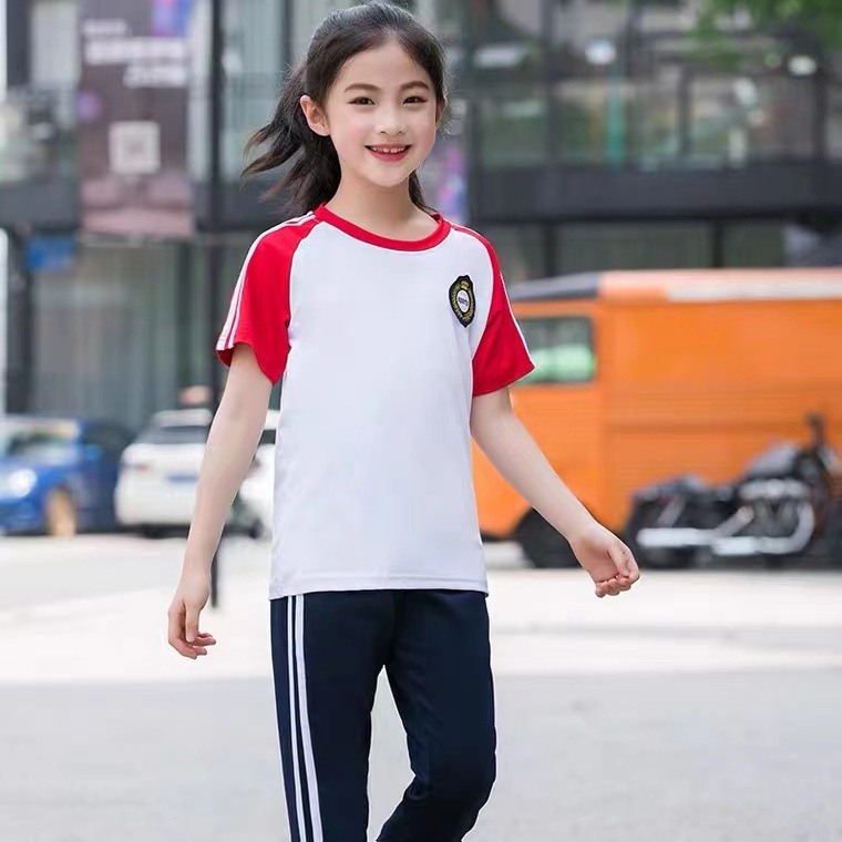 Весенне-осенняя форма для детского сада Школьная форма для учеников начальной и средней школы Спортивный костюм-тройка с короткими рукавами Летняя спортивная одежда