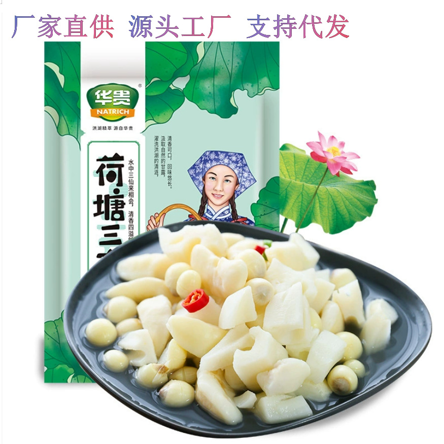 [Hua Guui] Ставок лотоса Sanbao 450 г корень лотоса Хунху фермерский дом Хунху вода каштан семена лотоса рис корень лотоса кубики ингредиенты для общественного питания