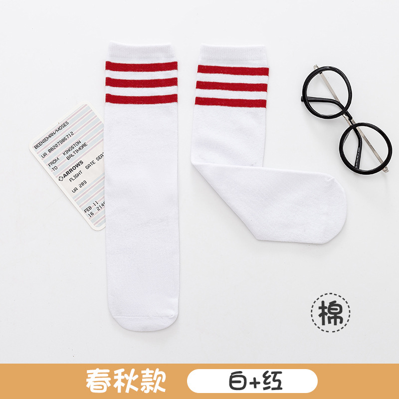 Детские длинные носки выше колена, хлопчатобумажные футбольные носки, ворсовые носки в академическом стиле, Модные Полосатые студенческие носки с тремя полосками, танцевальные носки