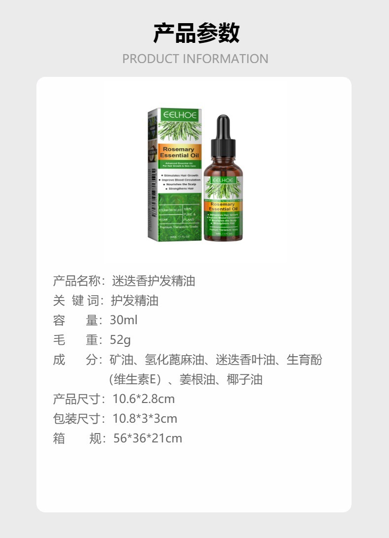 Эфирное масло для ухода за волосами EELHOE с розмарином, для бережного ухода за кожей головы, придающее гладкость и блеск, натуральное масло для пушистых волос.