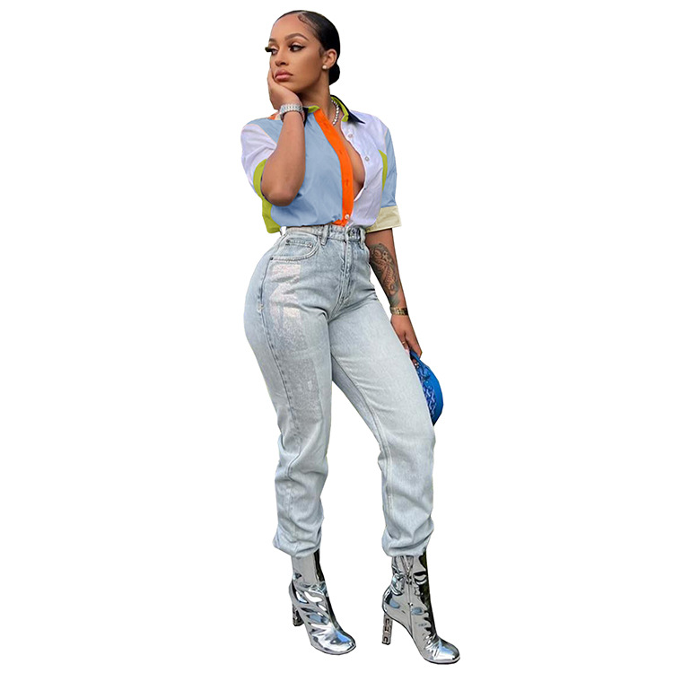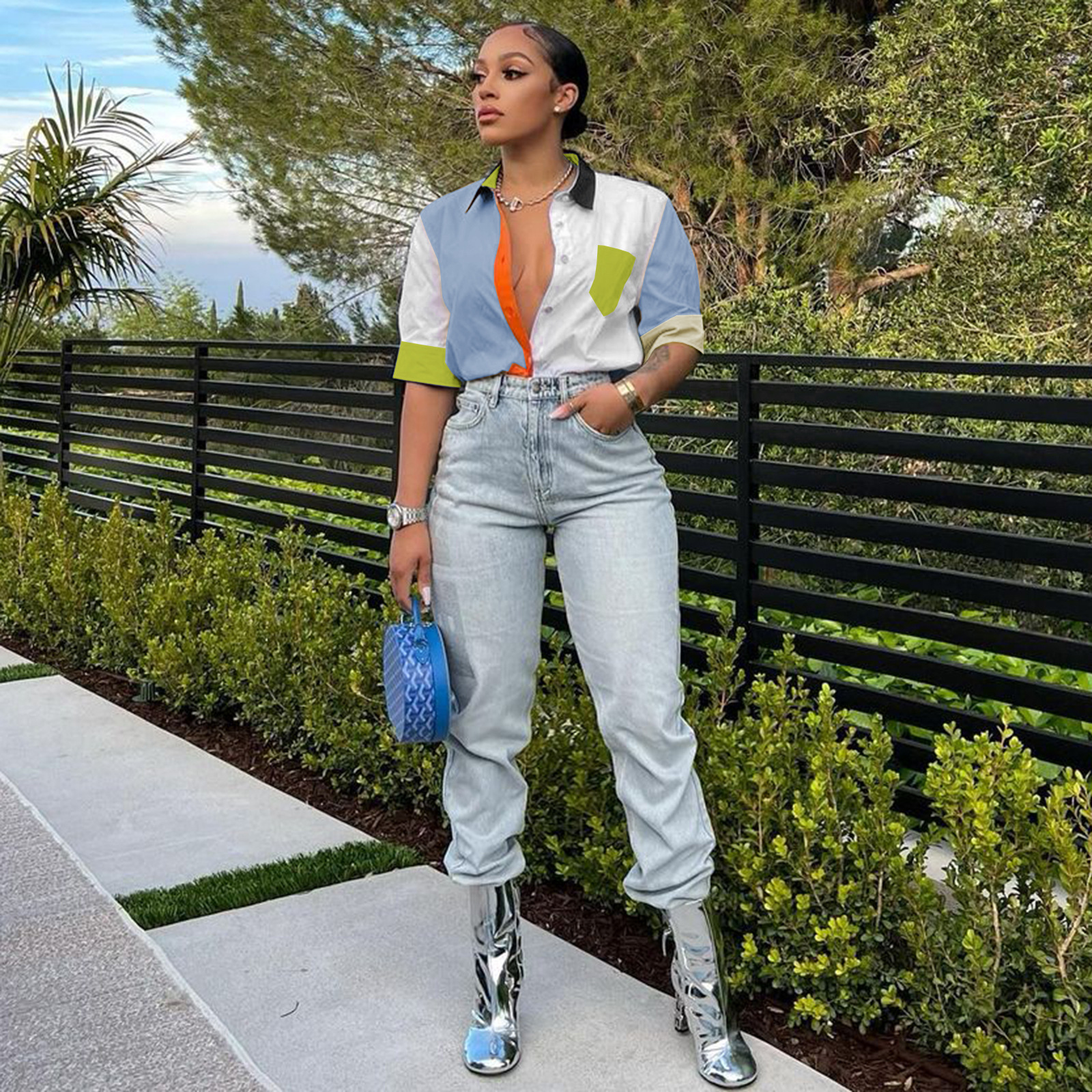 10097 Европейская и американская женская одежда Amazon независимая станция летняя новая мода повседневная Цветовая контрастная рубашка